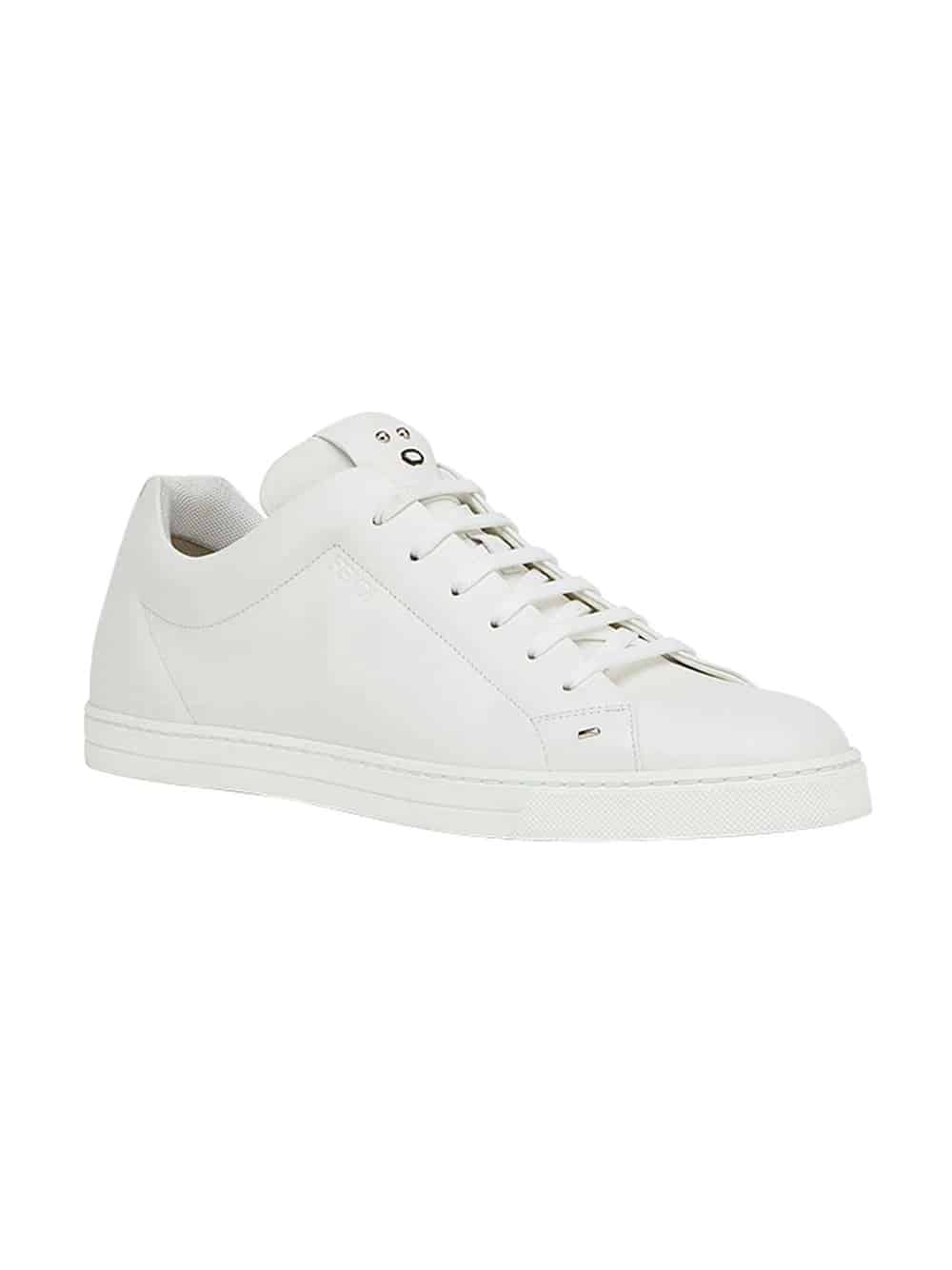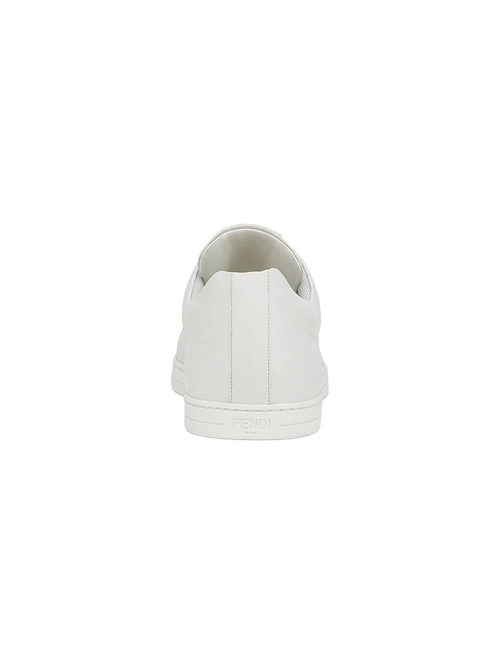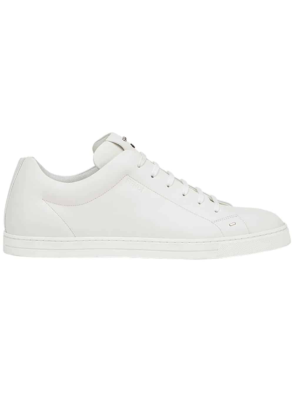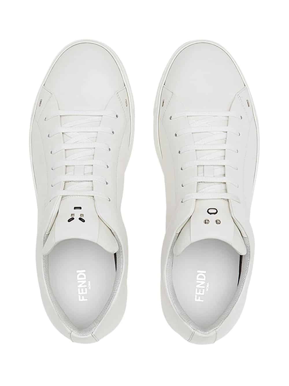 Karl Lagerfeld is an icon unto himself and has imparted his playful stylistic vision into the designs of the Roman maison of Fendi for over fifty years. Expect to see adorable plush fur Karlito bag charms, angry little monster motifs and swoon worthy, clean lined prêt-à-porter. These white calf leather and goatskin appliqué lace-up sneakers from Fendi feature a round toe, a lace-up front fastening, a branded insole, a flat sole and metallic appliqués at the tongue.
