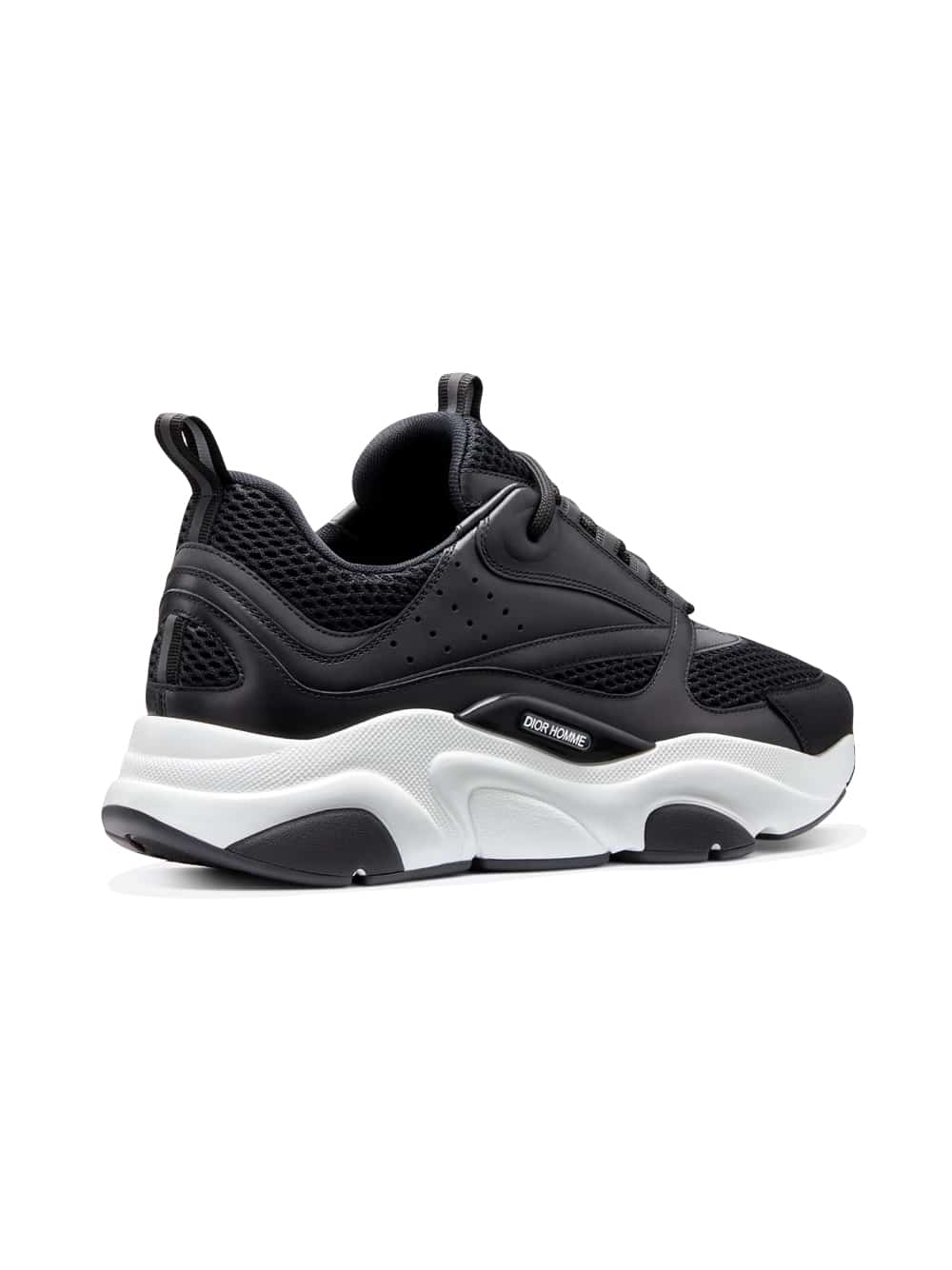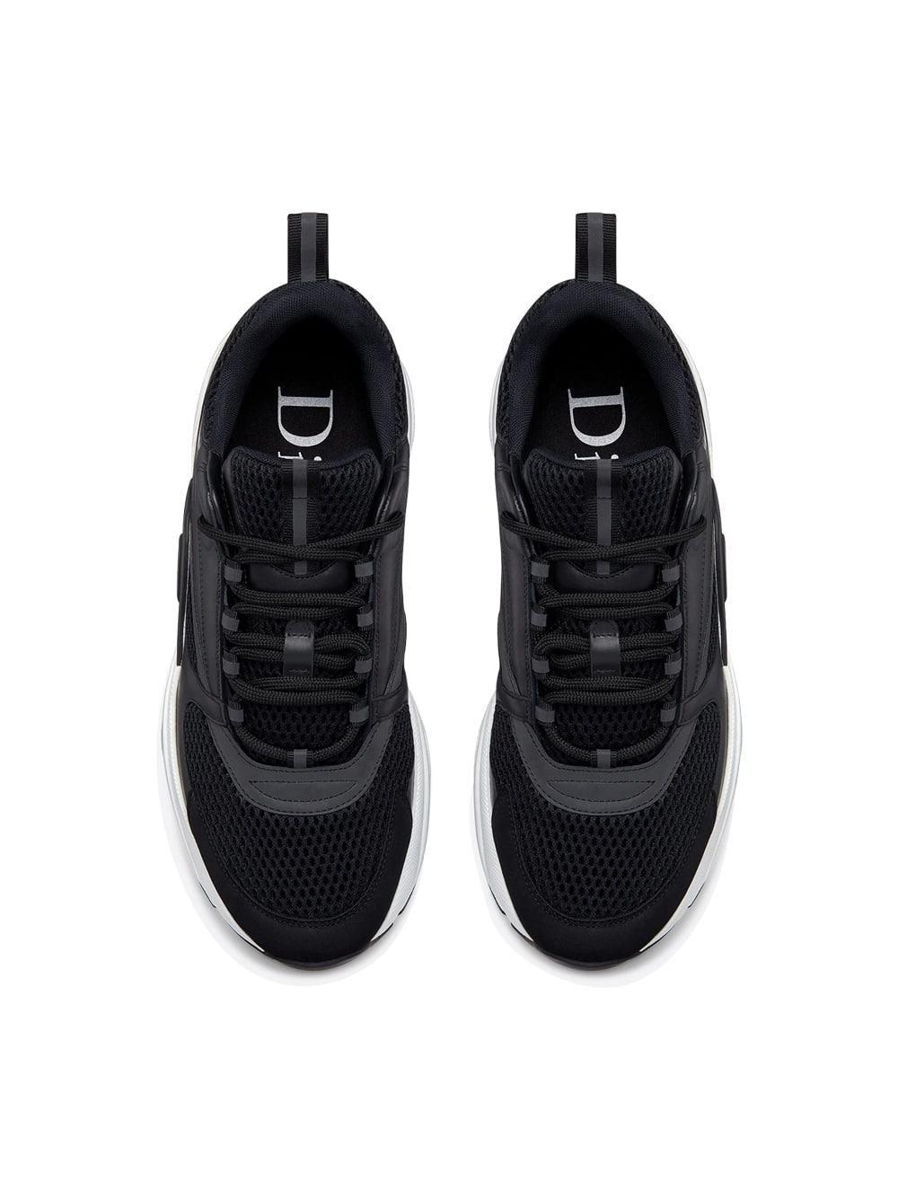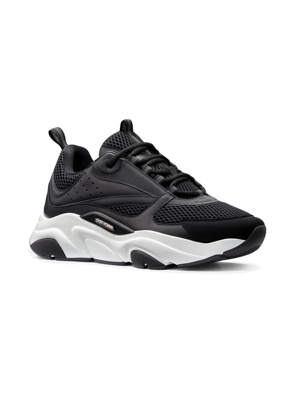 “B22” sneaker in black technical knit and calfskin, white and black rubber sole.