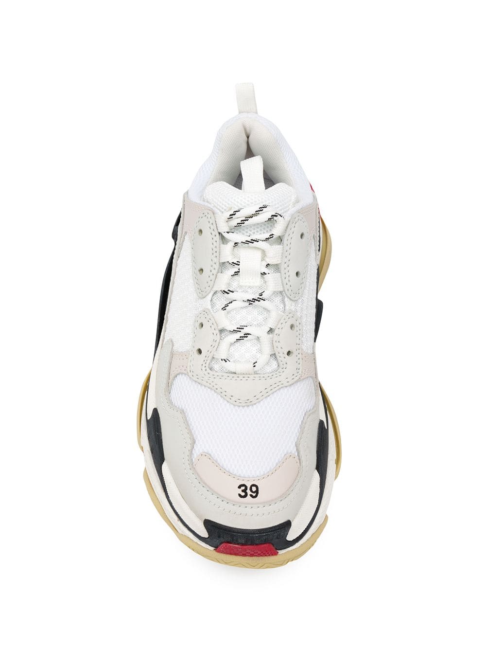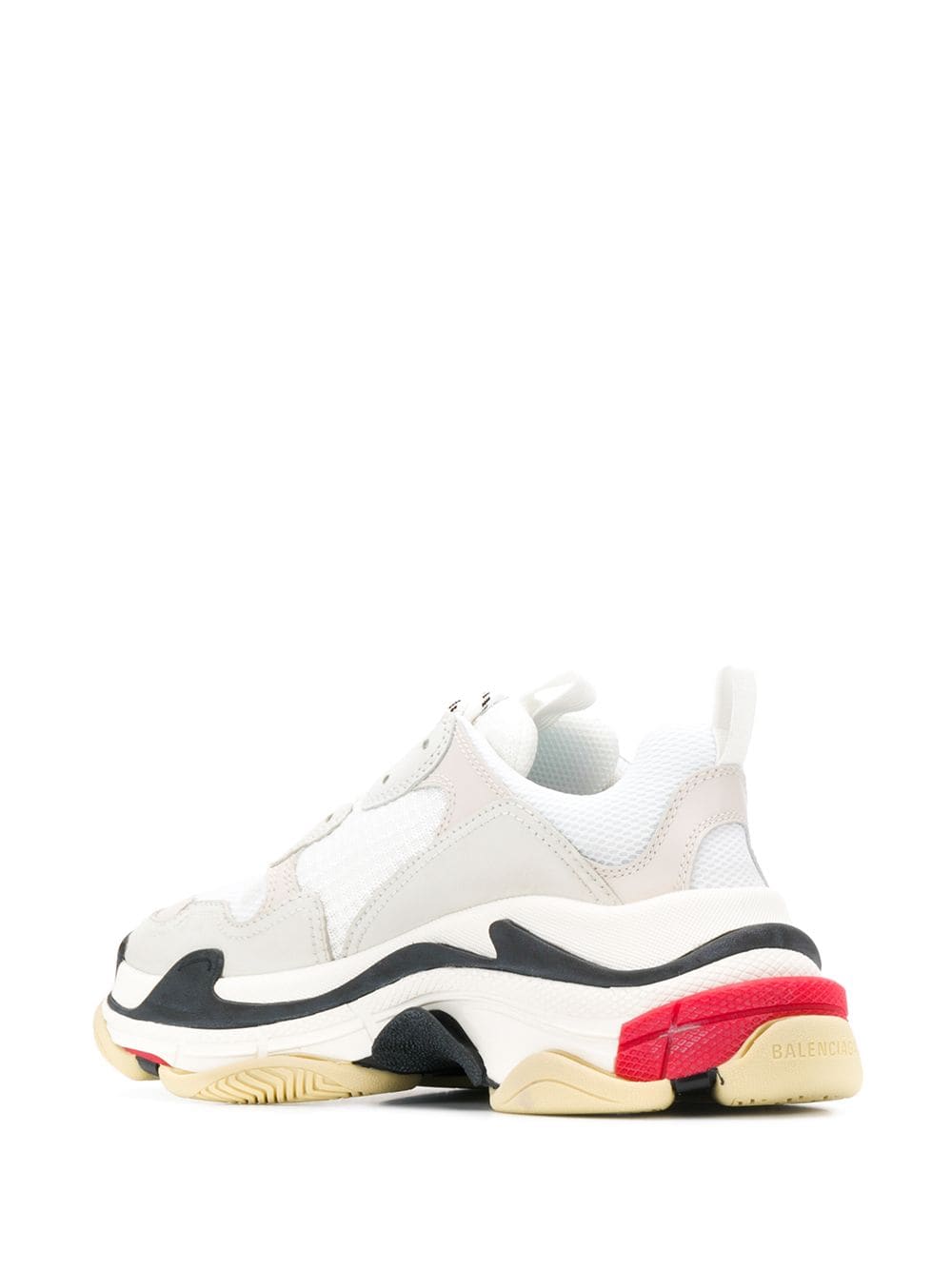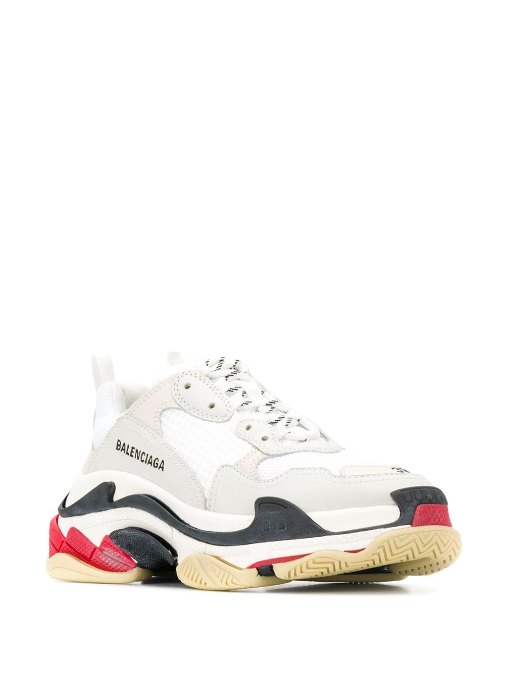 The Spanish fashion house of Balenciaga offers cutting-edge styles that balance clean, modern silhouettes with strong shapes and innovation with refinement. Crafted in mixed materials, these M Triple S tricolour sole sneakers are a signature. Featuring a round toe, a lace-up front fastening, leather panels, a pull tab at the rear, a logo to the outside and a ridged rubber sole.