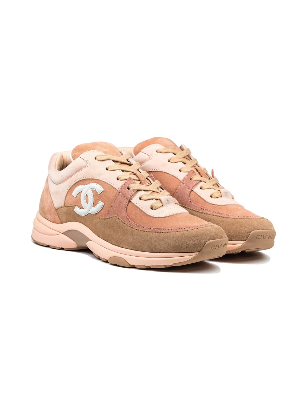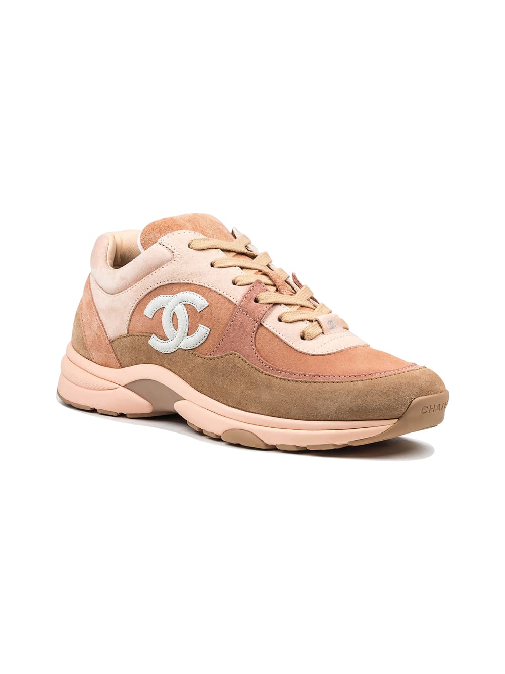 COLOUR: Beige Sand COMPOSITION: Suede Round toe, low top Beige toe cap Chanel Logo on side