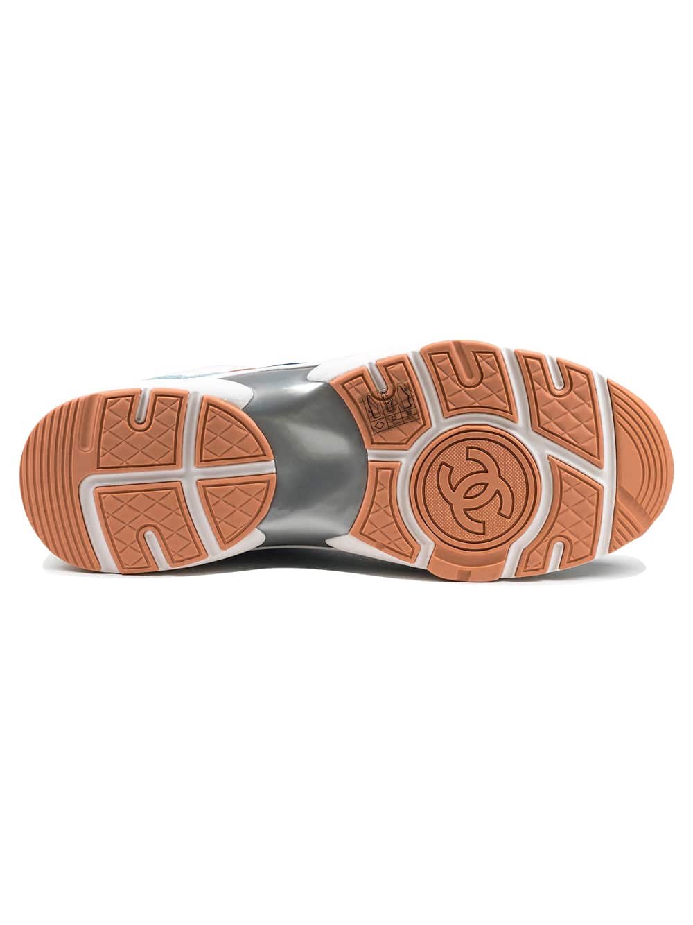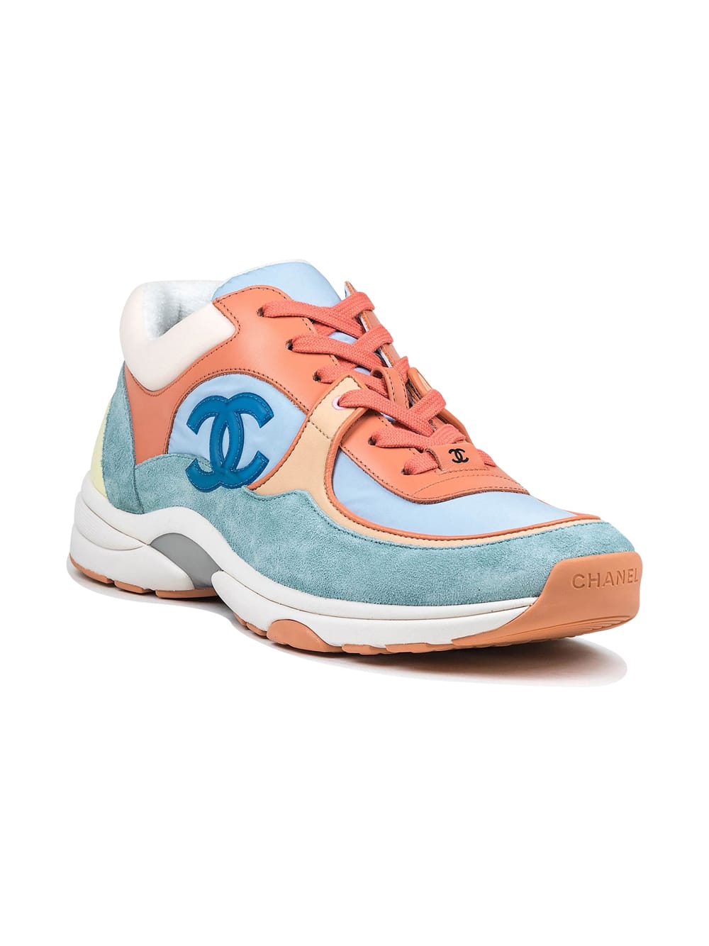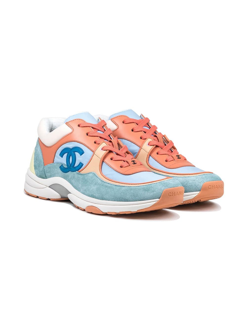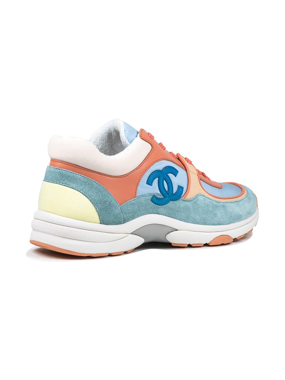 Chanel CC Logo Coral, Light Blue And White Suede Sneaker