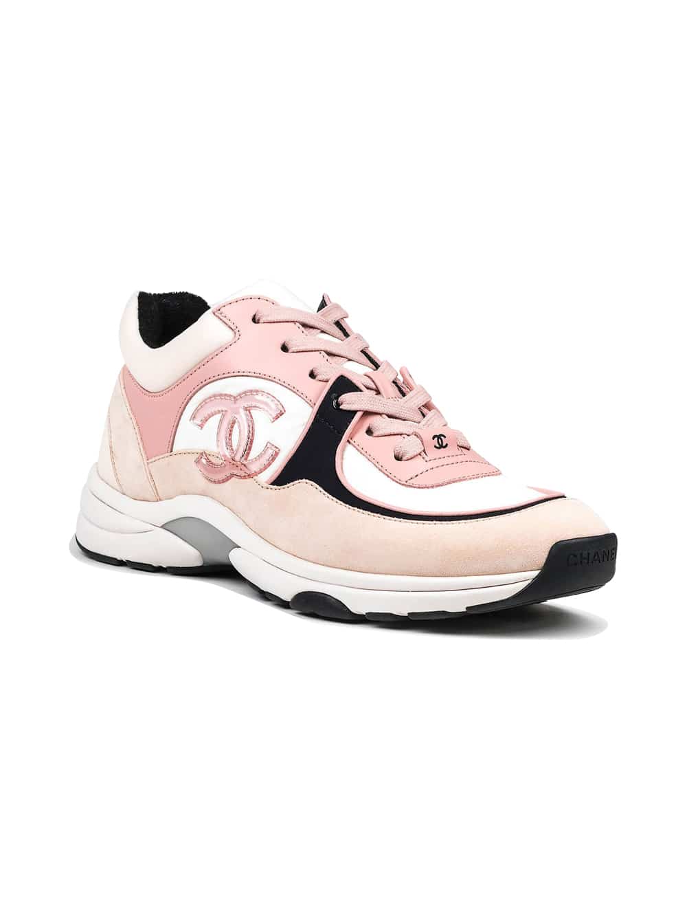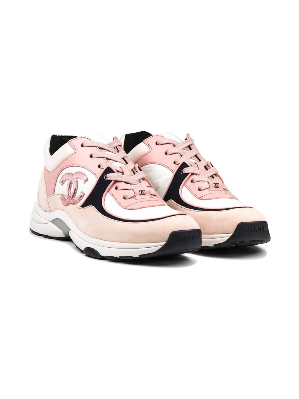 COLOUR: Pink COMPOSITION: Suede Round toe, low top Pink toe cap Chanel Logo on side