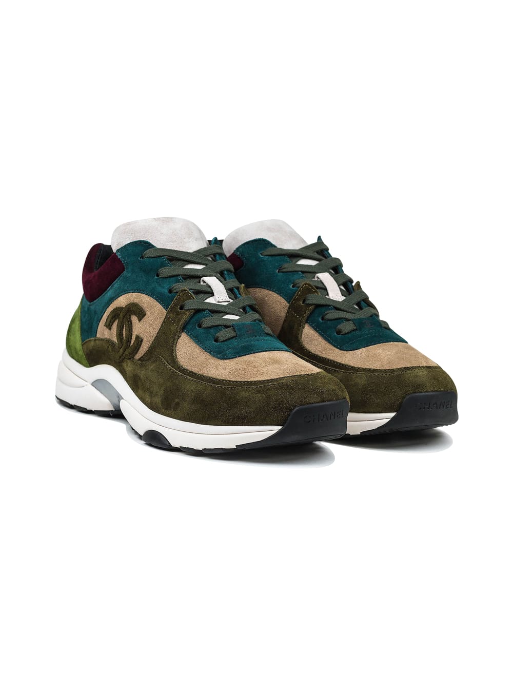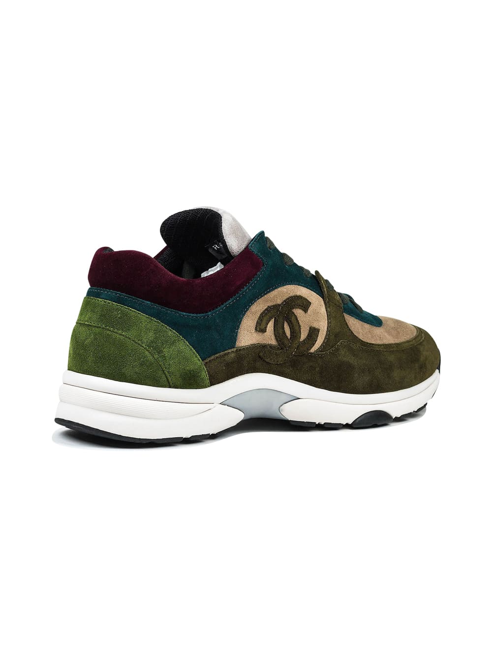 Chanel CC Logo Suede Brown Maroon Green Sneaker