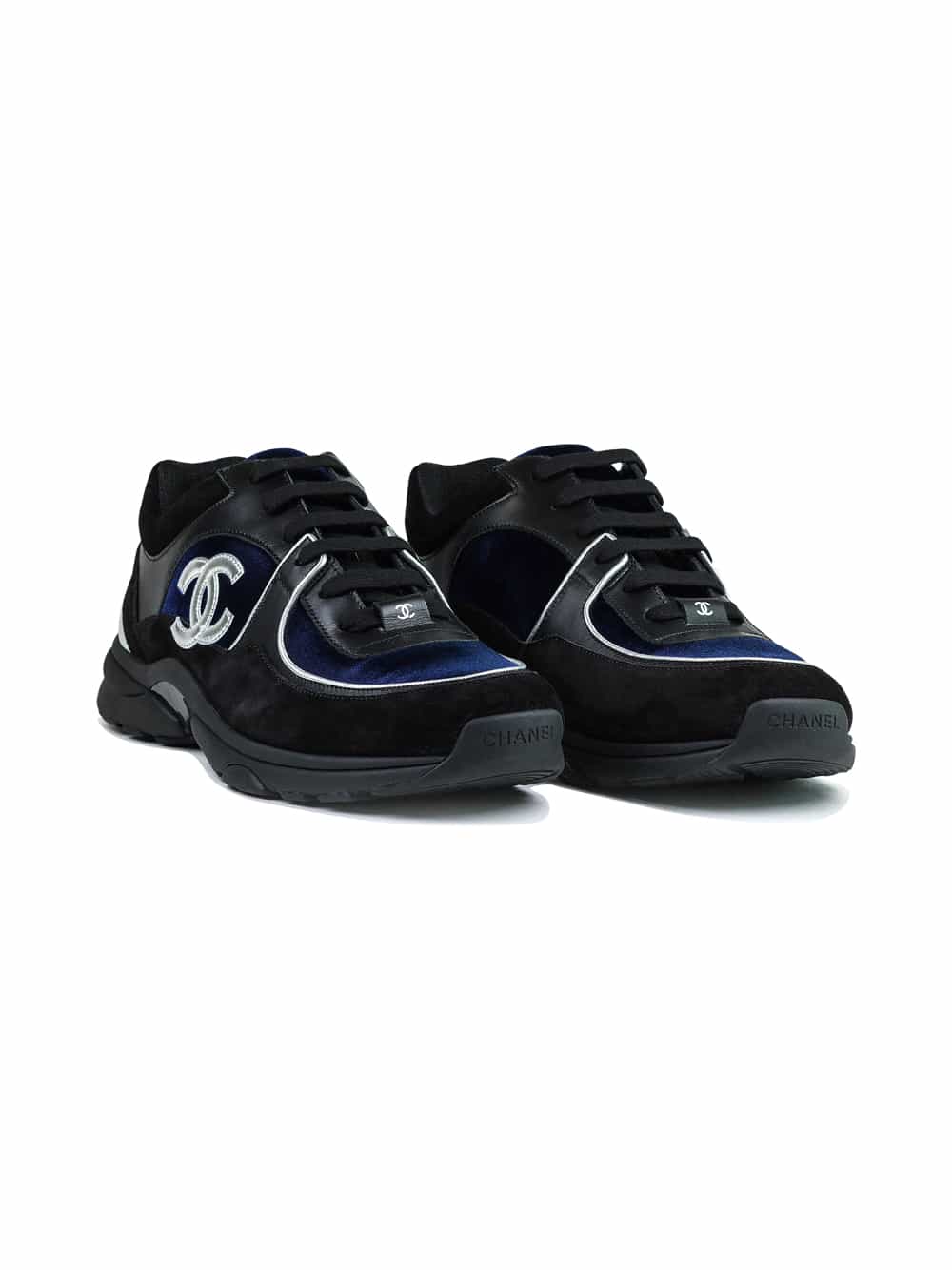 Chanel CC Logo Suede Sneaker Black/Blue/Silver