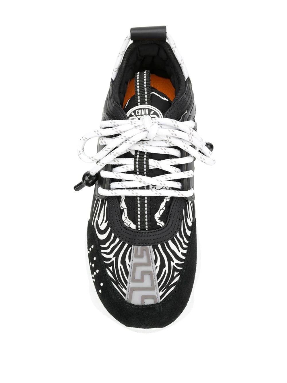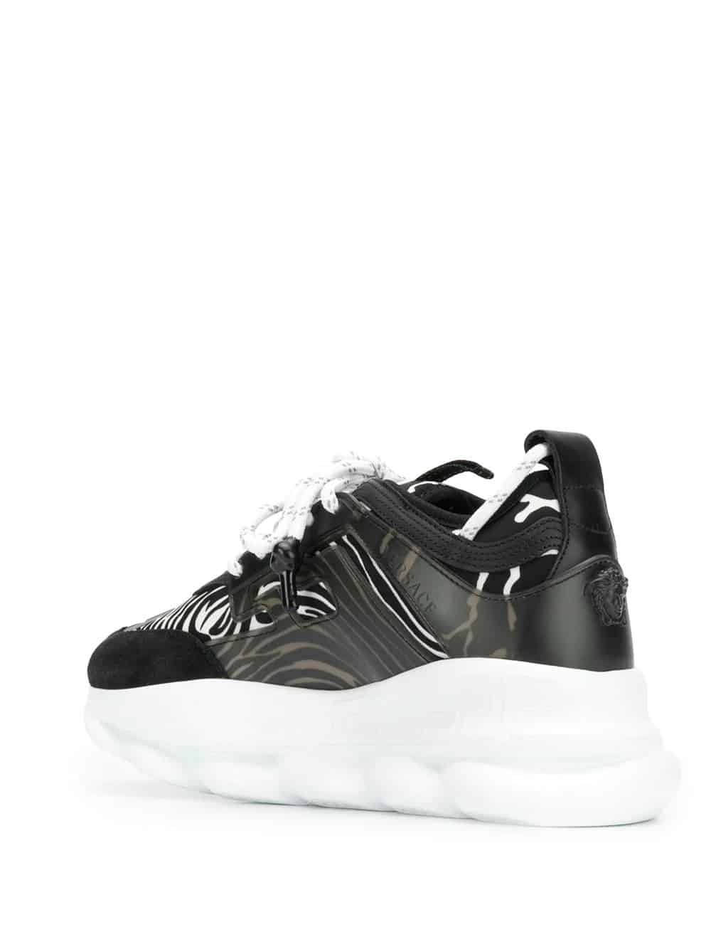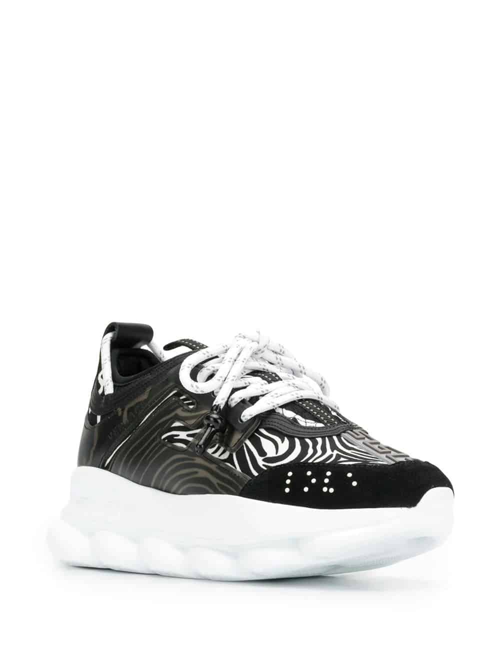 Since its founding in 1978, Versace has been synonymous with luxury fashion. Iconic prints and characteristically glamorous designs sit alongside sleek, modern ideas. These Chain Reaction sneakers from Versace Pre-Owned feature an animal print, a round toe, contrasting stitched panels, a platform sole, a pull tab at the rear, a lace-up front fastening and a Medusa detail.