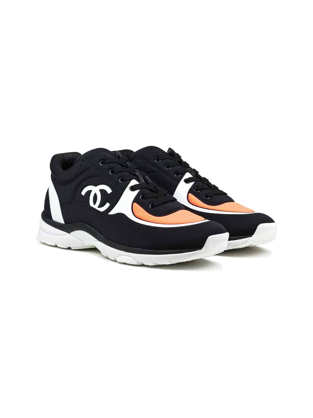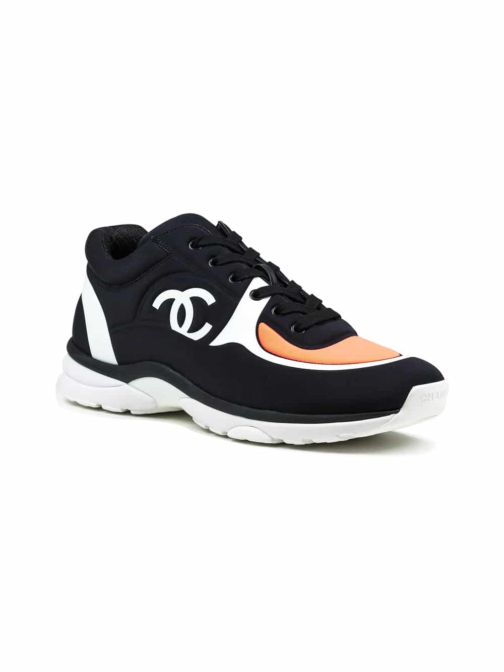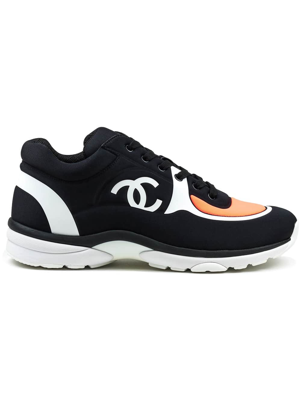 Chanel CC Logo Black White Coral Lycra Sneaker