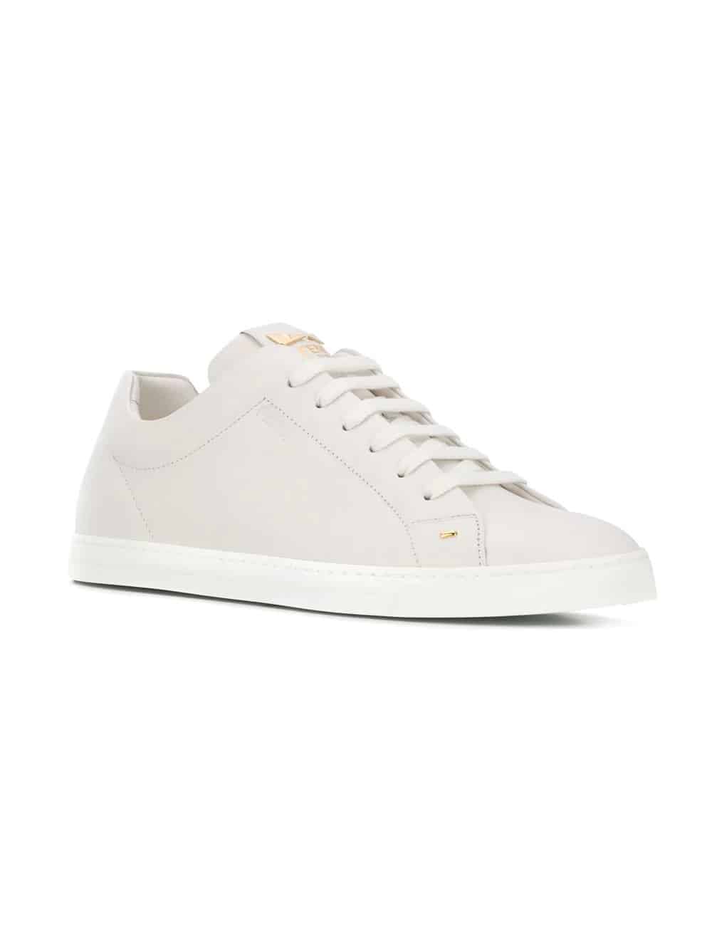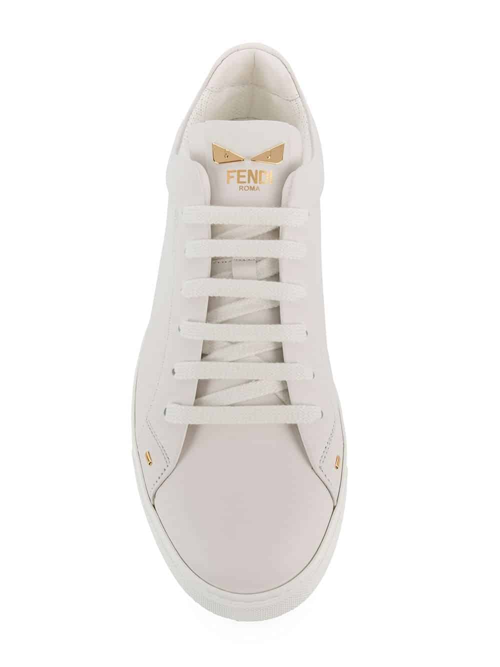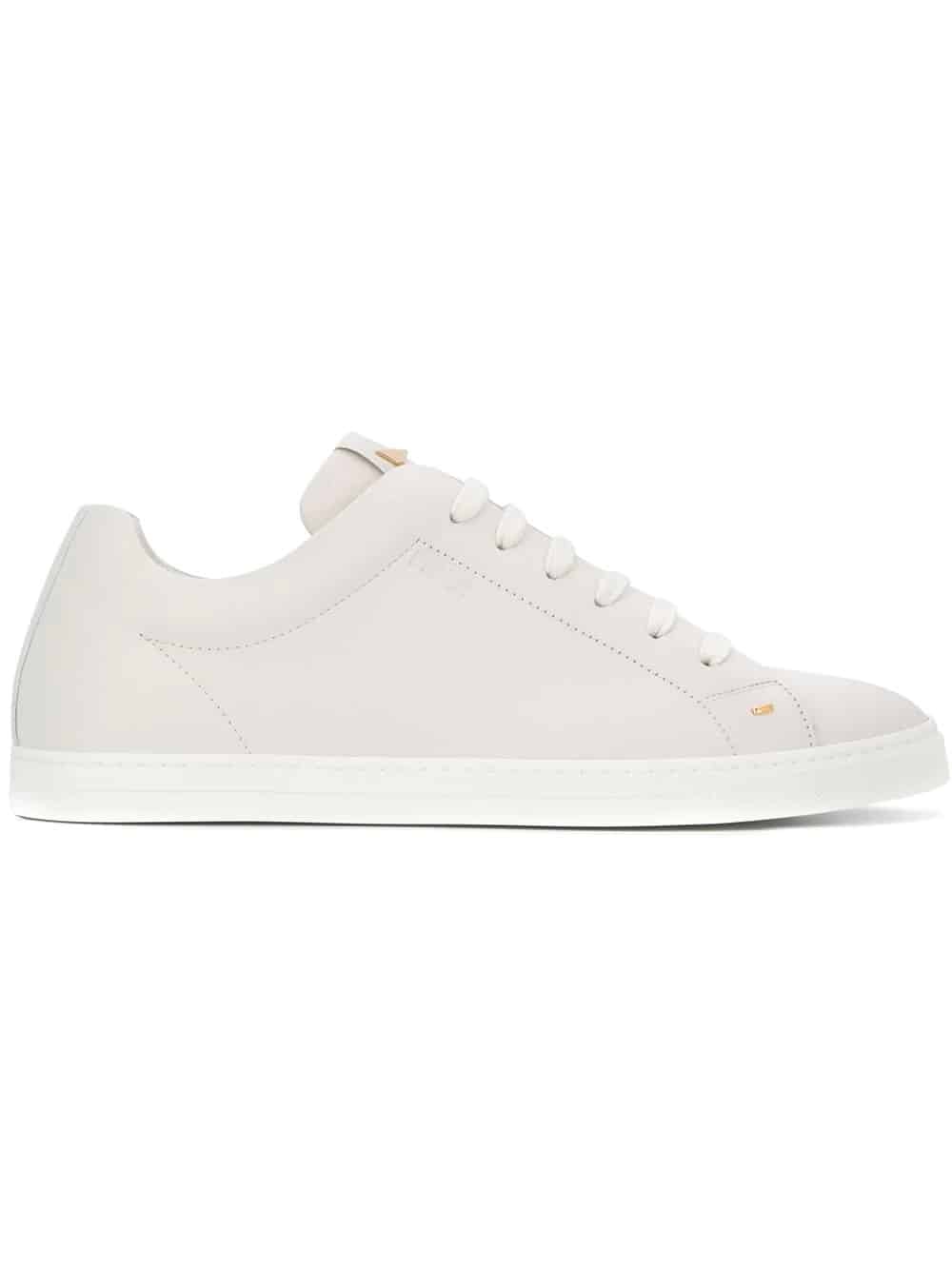Karl Lagerfeld is an icon unto himself and has imparted his playful stylistic vision into the designs of the Roman maison of Fendi for over fifty years. For SS19, expect to see leather and vinyl layering, structural designs, brown and earth-toned patterns and of course, the iconic FF logo all over. White leather classic low-top sneakers from Fendi featuring a white rubber sole, a round toe, a lace-up front fastening and a front logo plaque on the tongue.