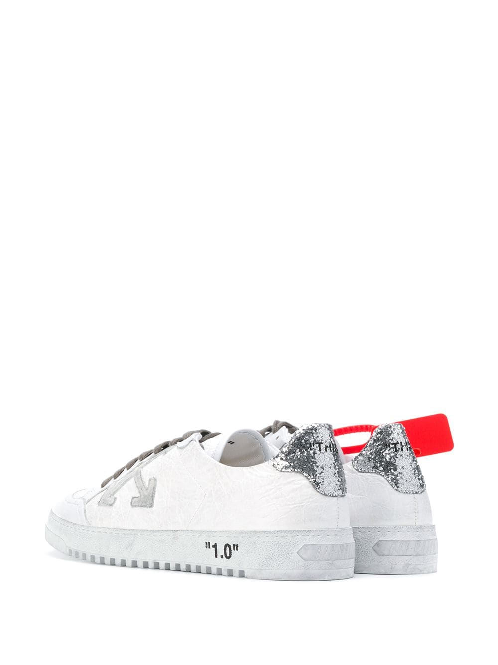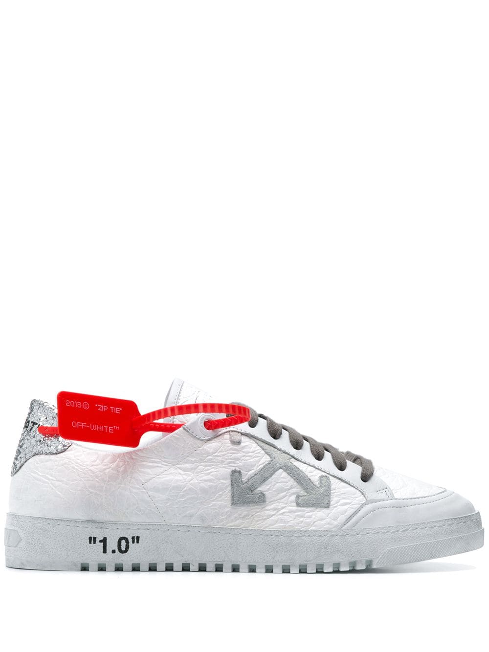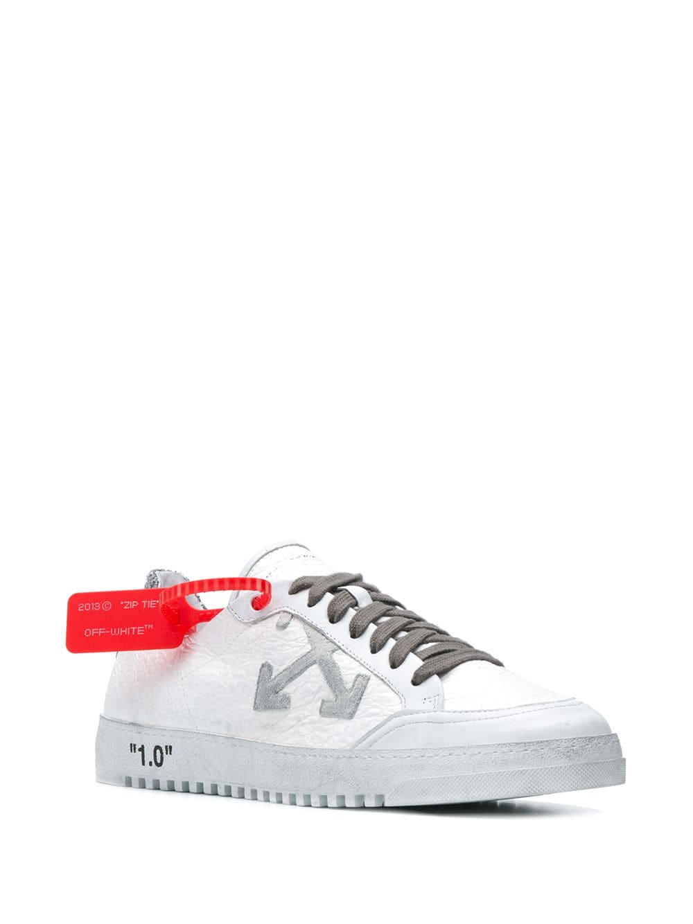 Mainly inspired by the youth culture, Off-White creates statement pieces with a distinctive aesthetic, expect punchy prints, graphic lines and laidback designs, as showcased by these white leather cross logo sneakers. Featuring a round toe, a lace-up front fastening, a branded insole, a contrasting heel counter, a ridged rubber sole and a contrasting silver-tone printed lettering logo at the tongue.