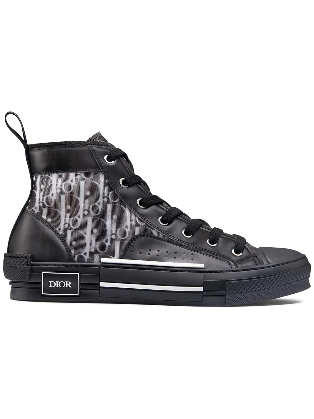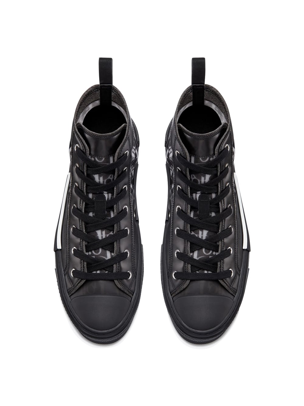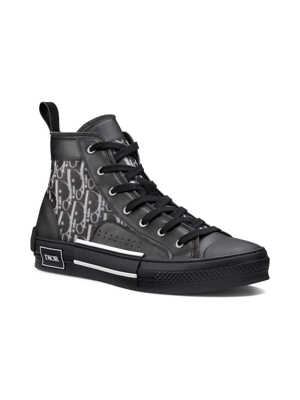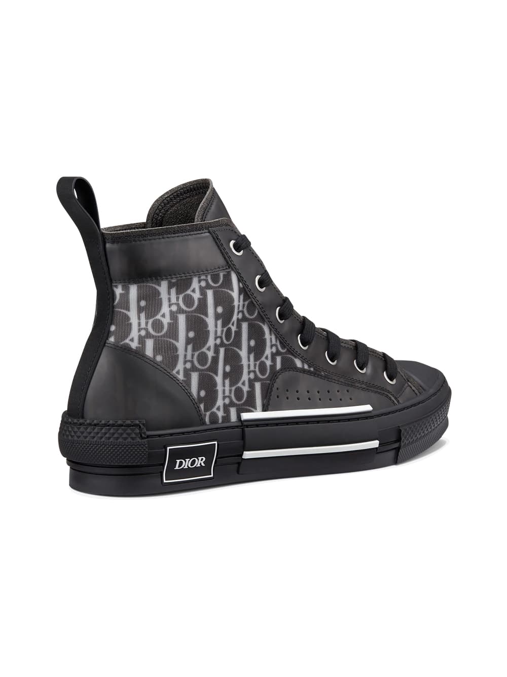 “B23” high-top sneaker in transparent black and white Dior Oblique technical canvas and black calfskin, black and white rubber sole, “Dior” logo.