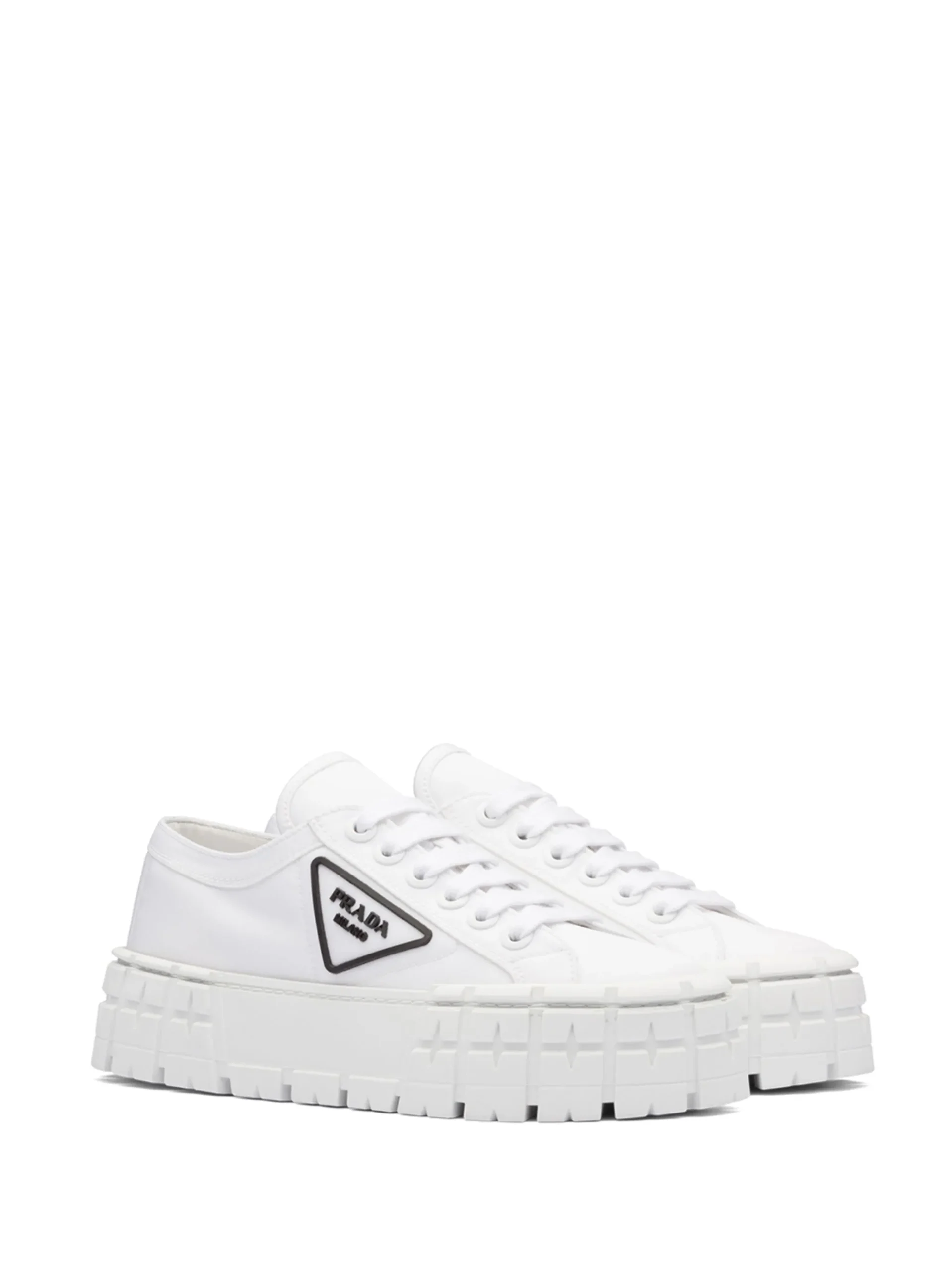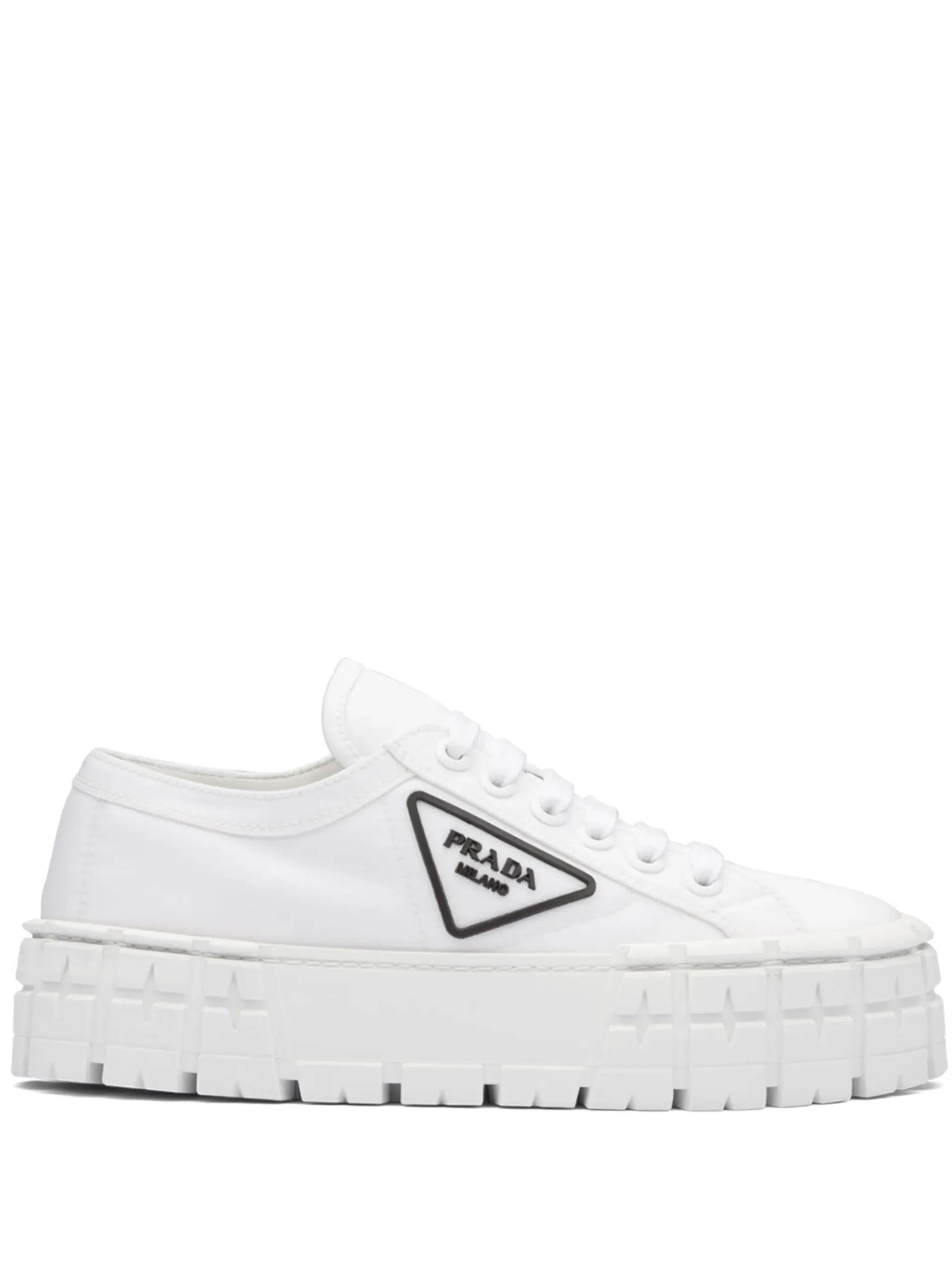 This pair of Double Wheel sneakers from Prada are defined by the platform rubber outsole, which is inspired by motorcross tires. Crafted in Italy from the brand’s Re-Nylon fabric, the low-top silhouette is finished with a signature triangular logo to one side.
