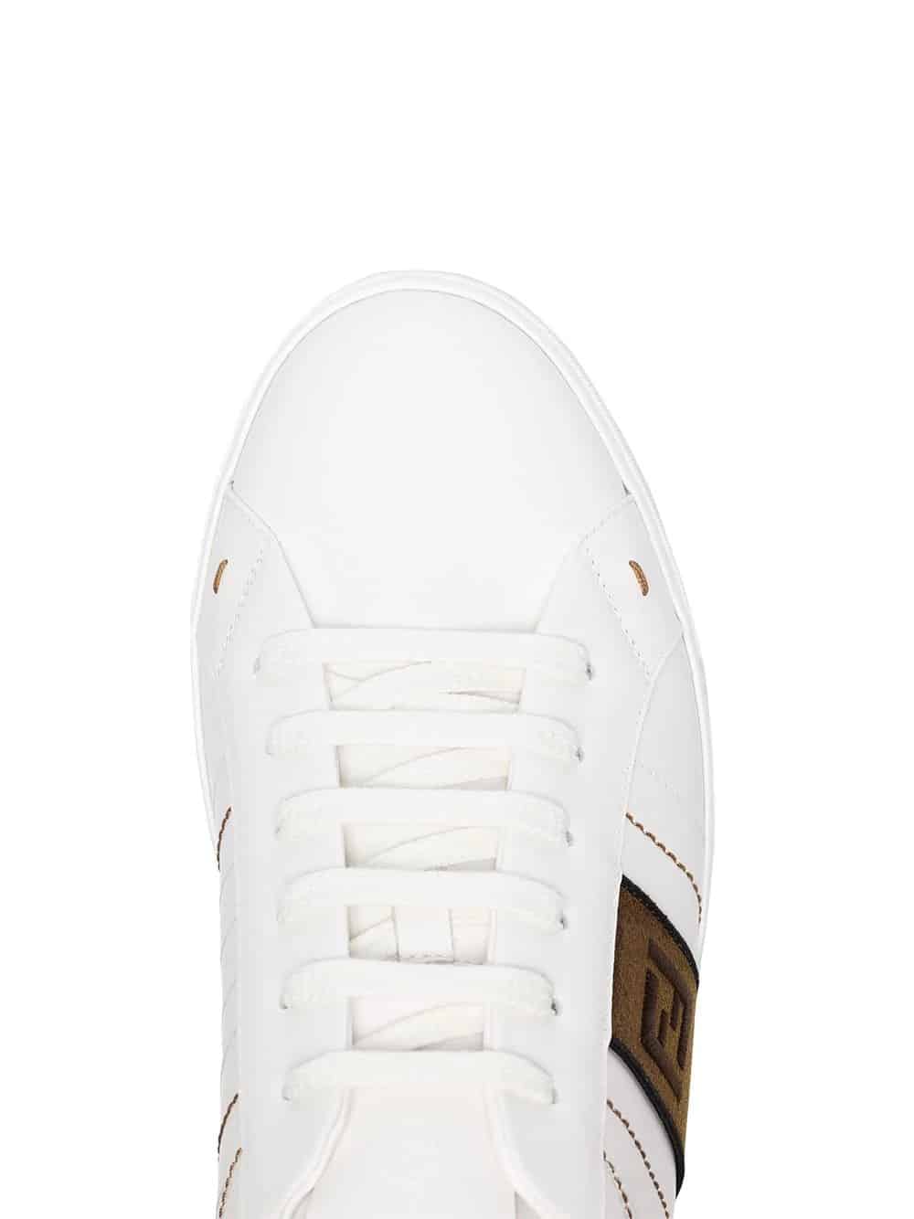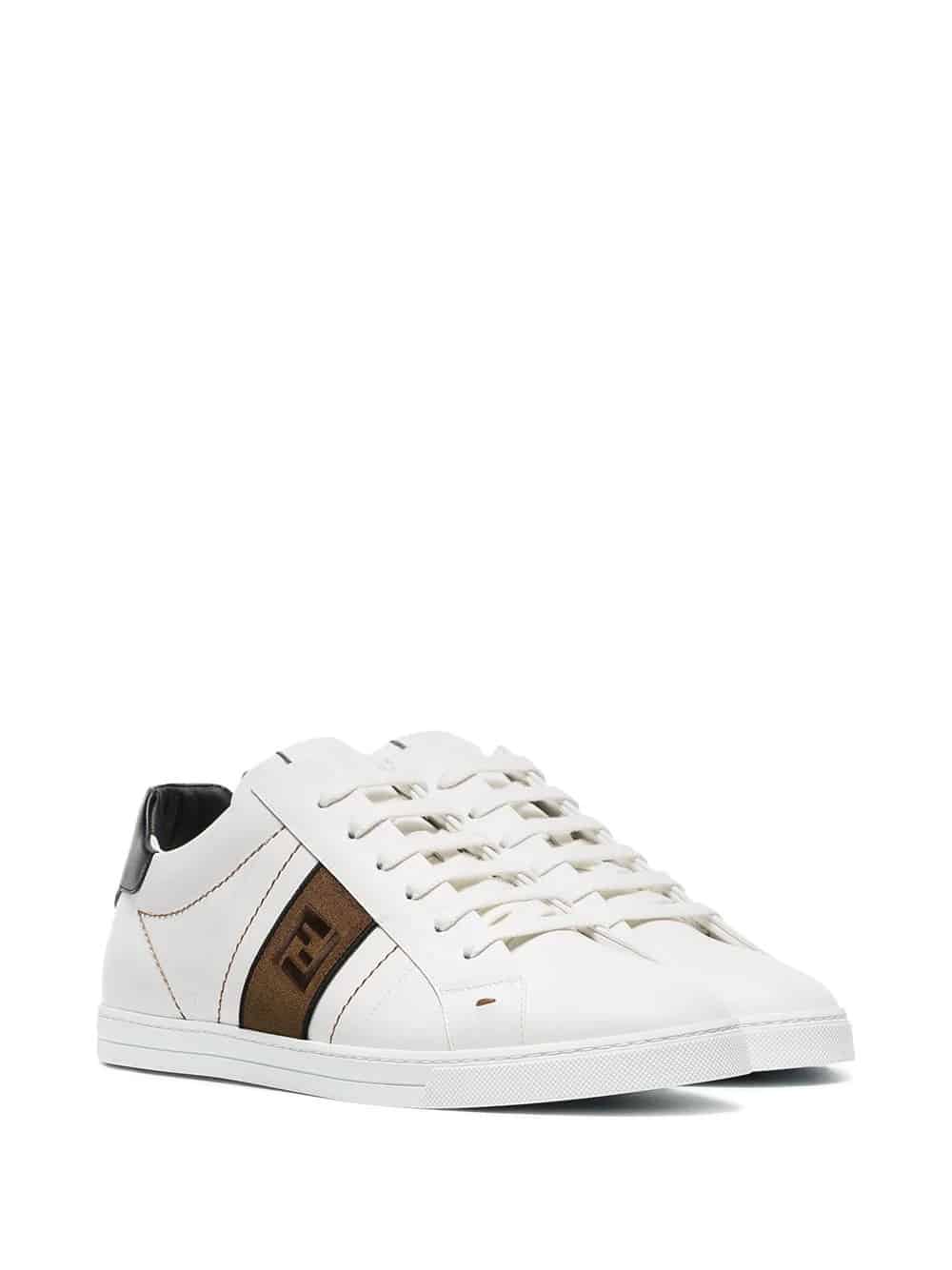 white FF motif leather low top sneakers