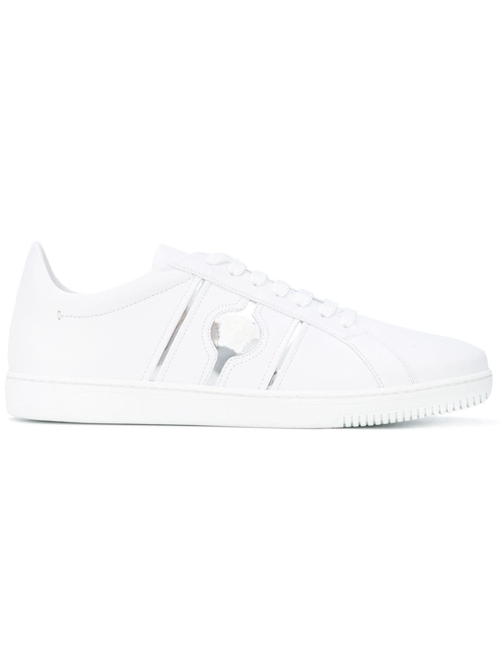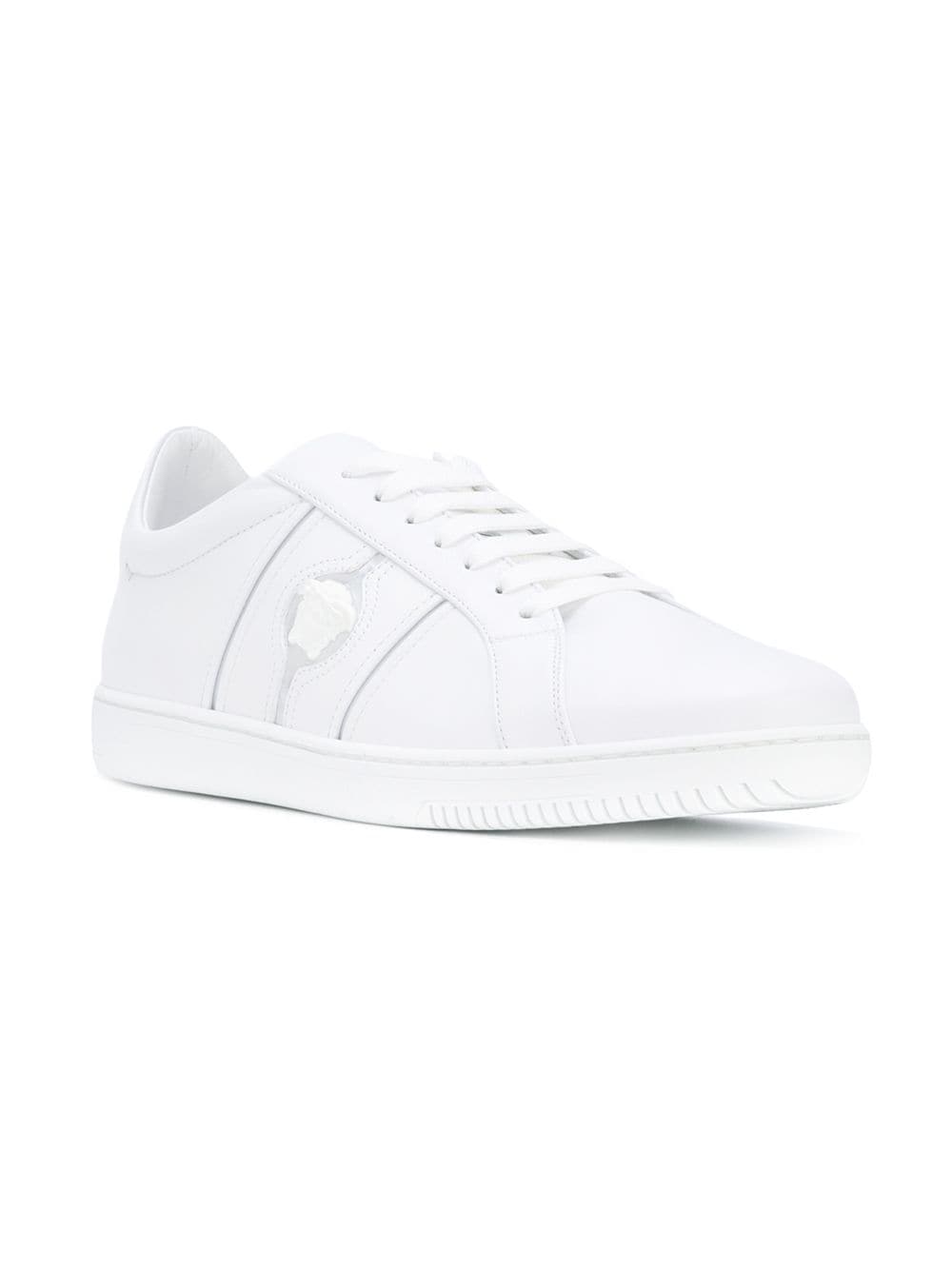 Versace presents forward-looking design with these Medusa lace up sneakers. A genuine leather piece, these Italian-made shoes give a luxe take on the traditional sneakers. Versace iconography features at the side, with a Medusa head logo plaque visible. Elsewhere, the Medusa sneakers feature a round toe, a lace-up front fastening, a flat sole and a branded insole.