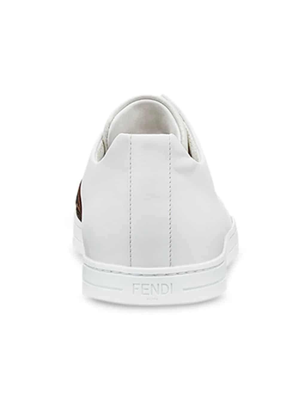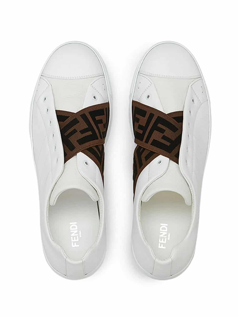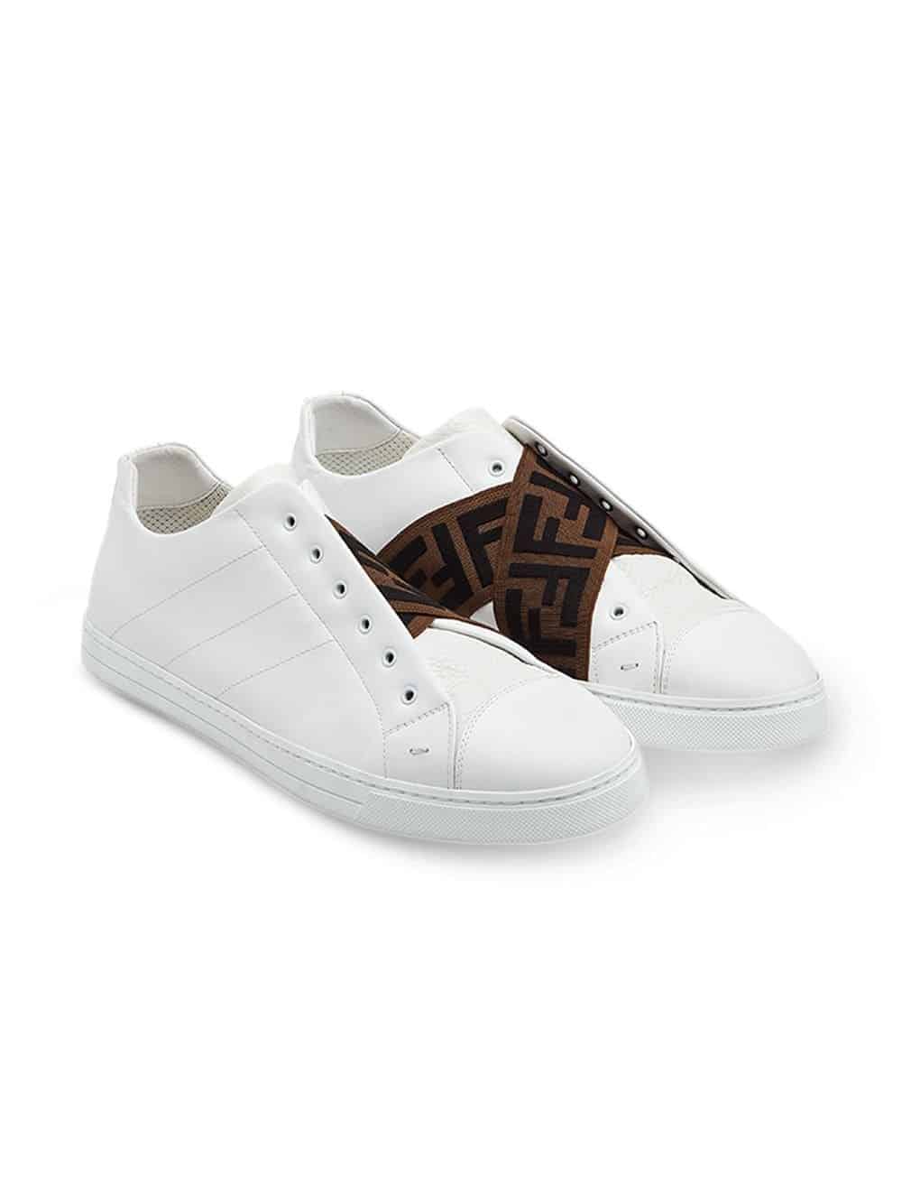 Bring a stylish flair to your wardrobe this season with Fendi’s latest footwear collection. By combining comfort with fashionable elegance, Karl Lagerfeld has presented us with yet another amazing collection. From trendy slip-on sneakers to FF-logo and Bag Bugs embellished lace-up sneakers, Fendi has done it again. Designed with your comfort in mind, these white lamb skin and calf leather low-top sneakers from Fendi sit on a flat rubber sole and present a laceless design, two crossover straps with an FF logo print and a round toe.
