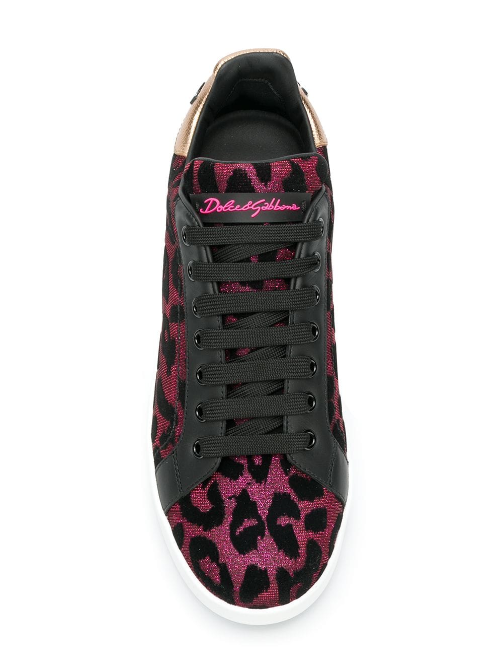 Dolce and Gabbana live and breathe Italian spirit – reflected within their sleek collections and accessories that redefine Sicilian style. These black and fuschia calf leather and leather leopard print sneakers from Dolce & Gabbana feature a round toe, a lace-up front fastening, a leopard print, a branded insole and a white rubber sole.