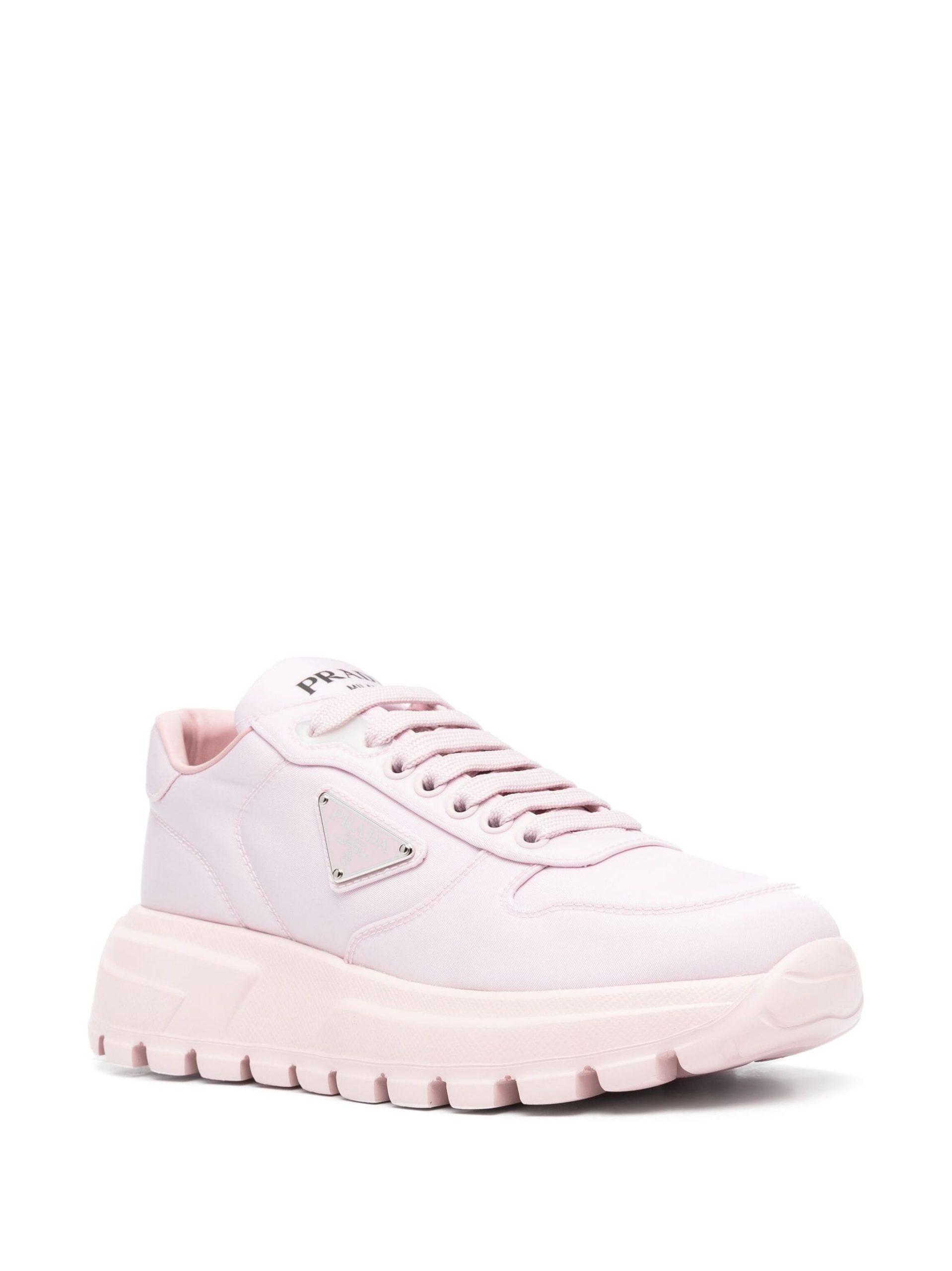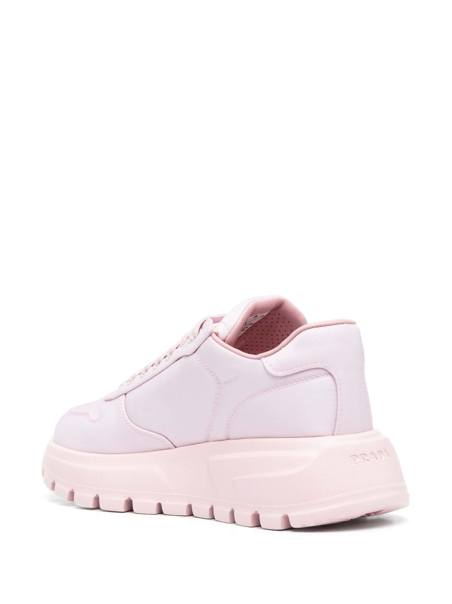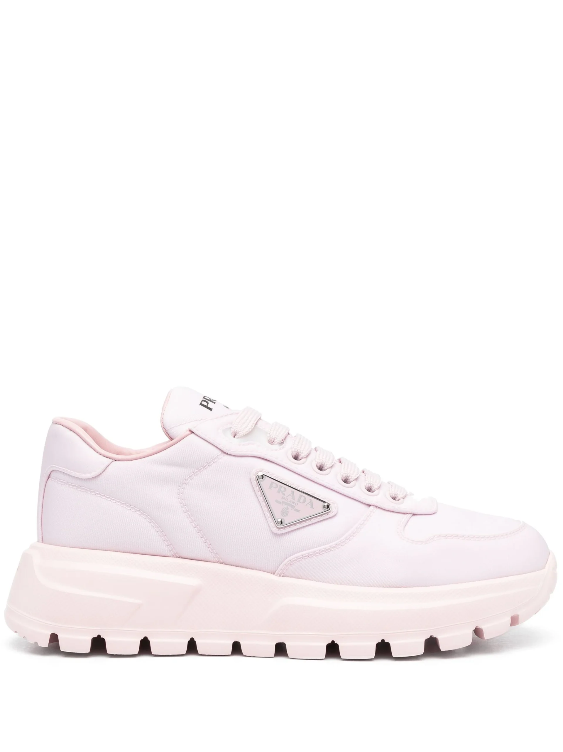 Prada’s sneakers are simply decorated with the brand’s signature triangle logo plaque – a nod to the label’s minimalist aesthetic. This light pink pair is set on chunky ridged soles