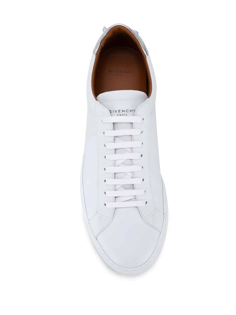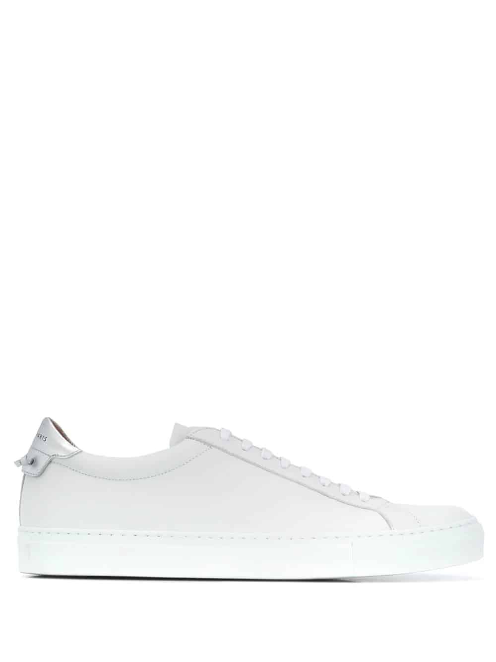 White leather low-top sneakers from Givenchy featuring a lace fastening, a branded insole, a contrasting heel counter and a flat rubber sole.