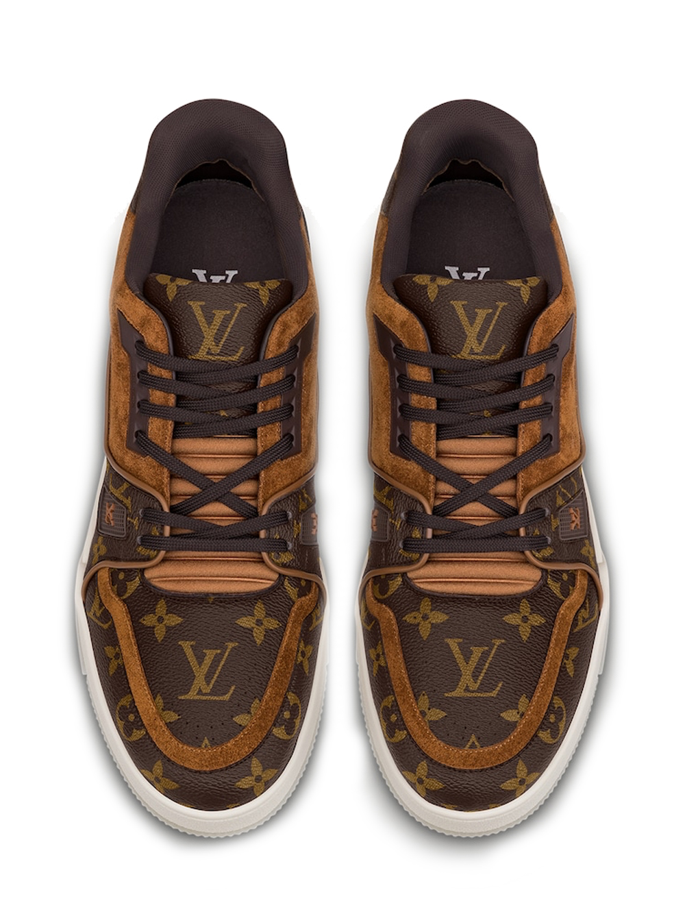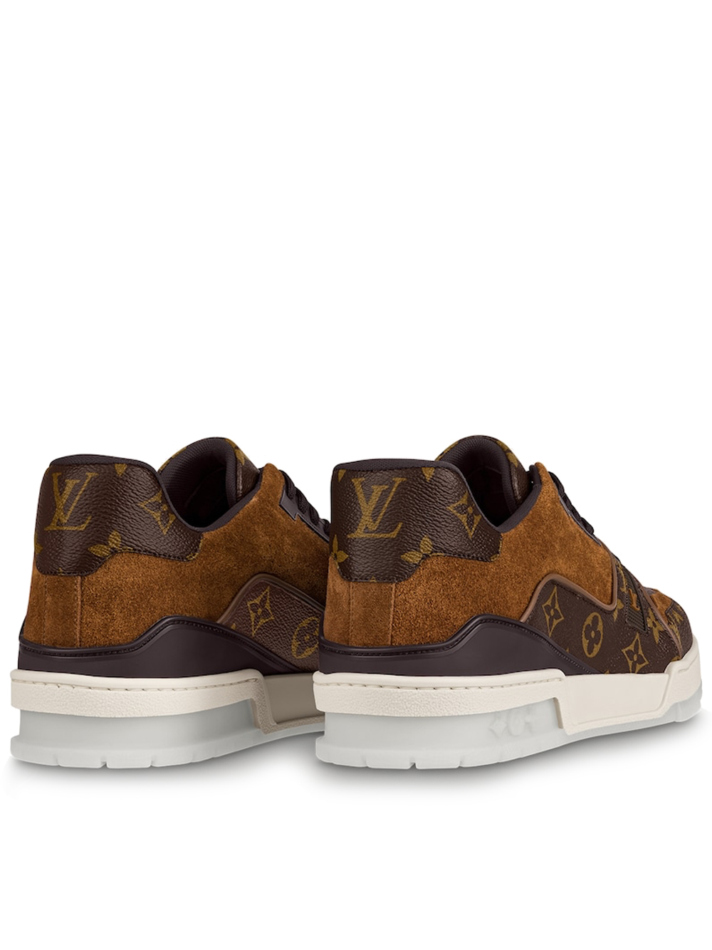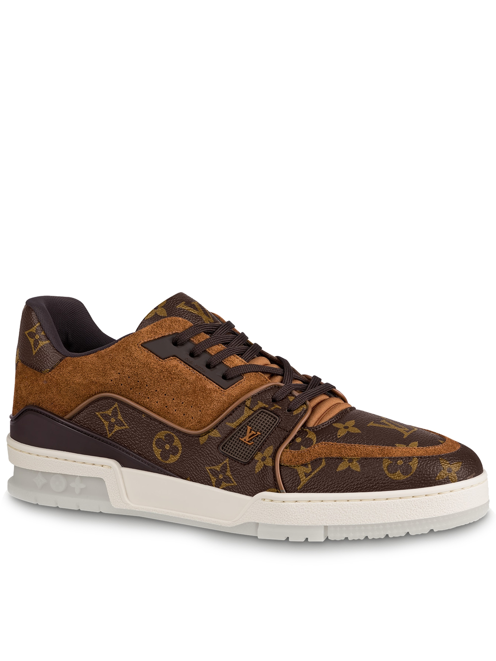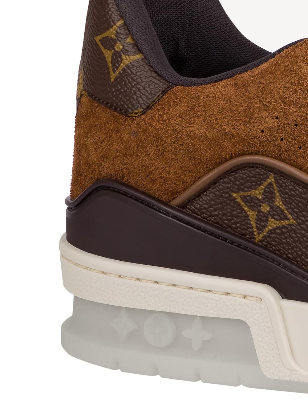 For the first time, the iconic LV Trainer sneaker, launched at Louis Vuitton’s Spring-Summer 2019 menswear show, comes in the House’s signature Monogram canvas with brown suede calf-leather trim. This low-top model, inspired by vintage basketball sneakers, features an innovative gel-injected outsole with a motif of Monogram Flowers.
