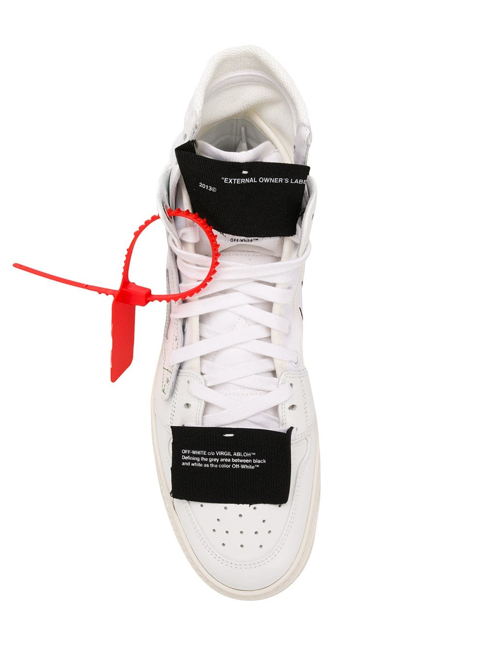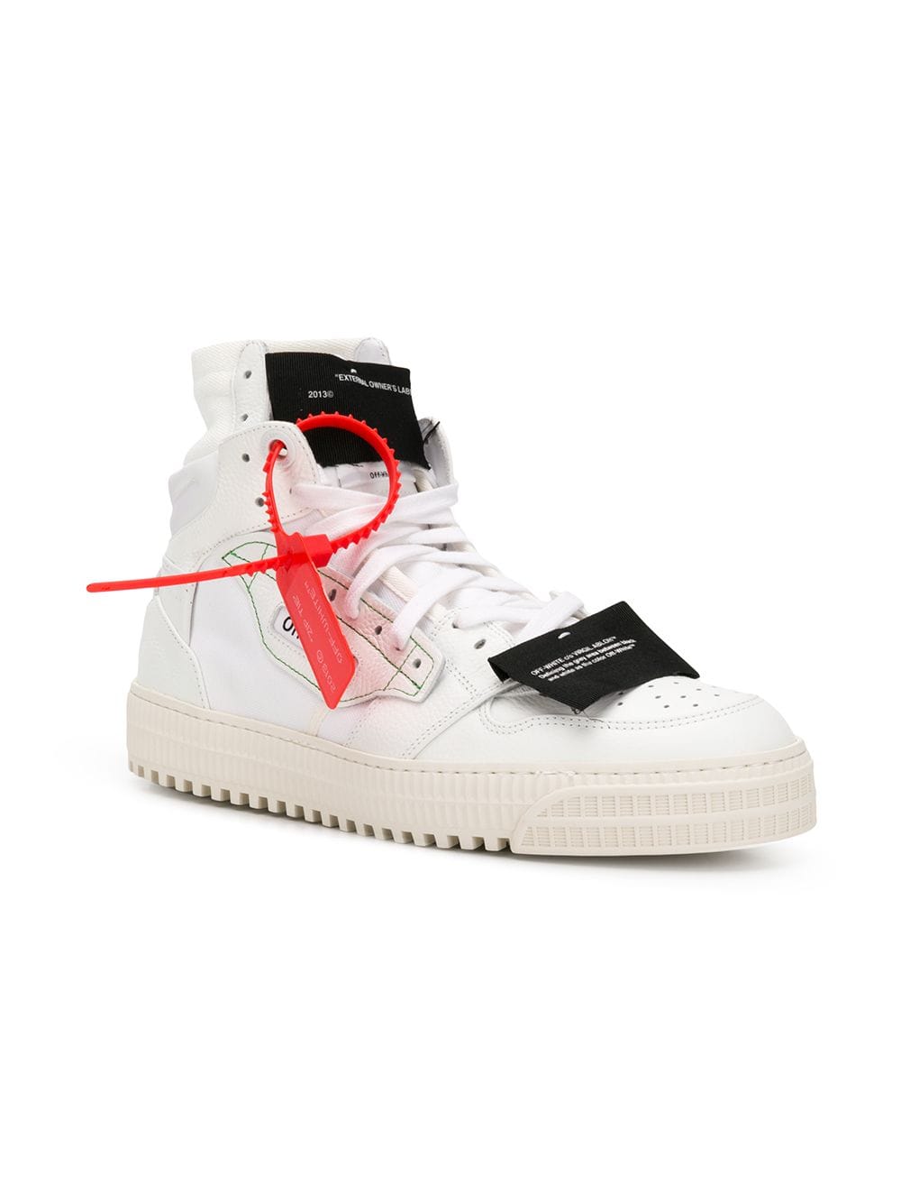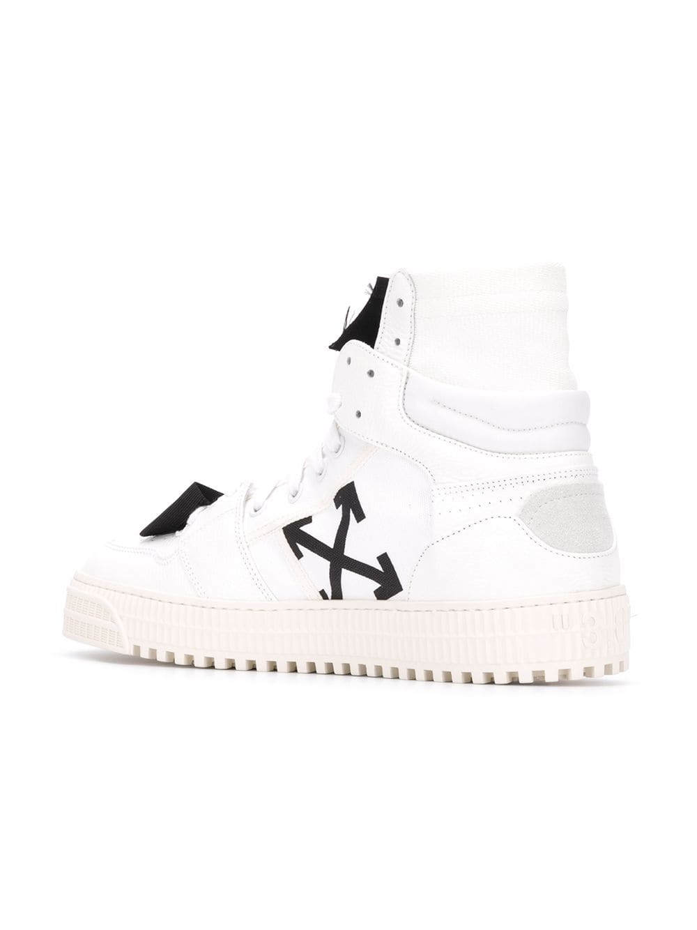 Virgil Abloh’s Off-White is a streetwear-inspired collection that continues to break away from the conventions of mainstream fashion. These white cotton blend and leather Off Court sneakers from Off-White feature a round toe, a lace-up front fastening, an embroidered logo to the front, an ankle length and a white rubber sole.