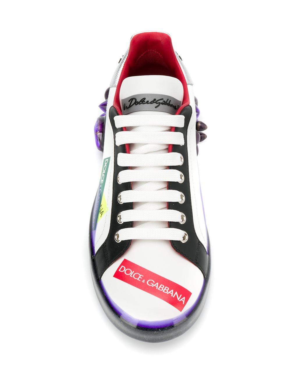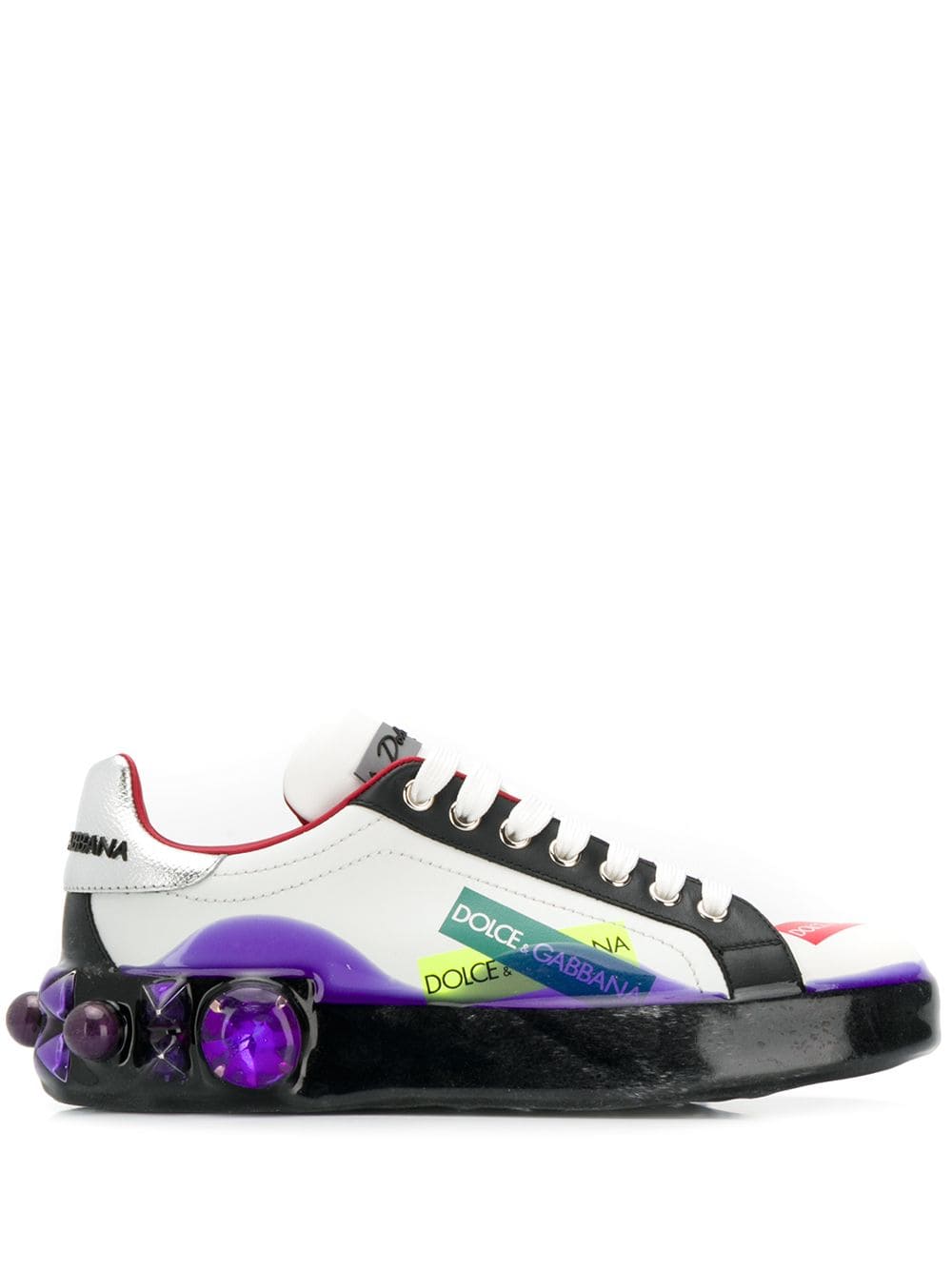 Known for its Italian roots for luxury and romantic designs, Dolce & Gabbana are iconic in fashioning timeless essentials for men and women in every occasion. In the latest collections, D&G targets youth culture with millennial motifs and a more casualwear approach to pieces. Presenting these white leather Portofino sneakers. Featuring a ridged rubber sole, a round toe, a lace-up front fastening and brand rubber detailing.