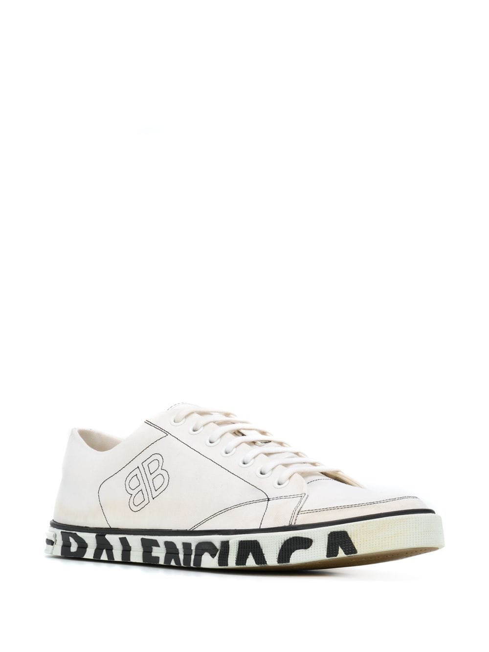 It is no surprise that anything Balenciaga conjures up rises to cult status. This season, expect more iconic handbags, contemporary footwear with a retro feel and logo-sprawled surfaces. Crafted from white cotton, these side logo sneakers feature a round toe, a lace-up front fastening, stitching details and a flat rubber sole with a printed logo.