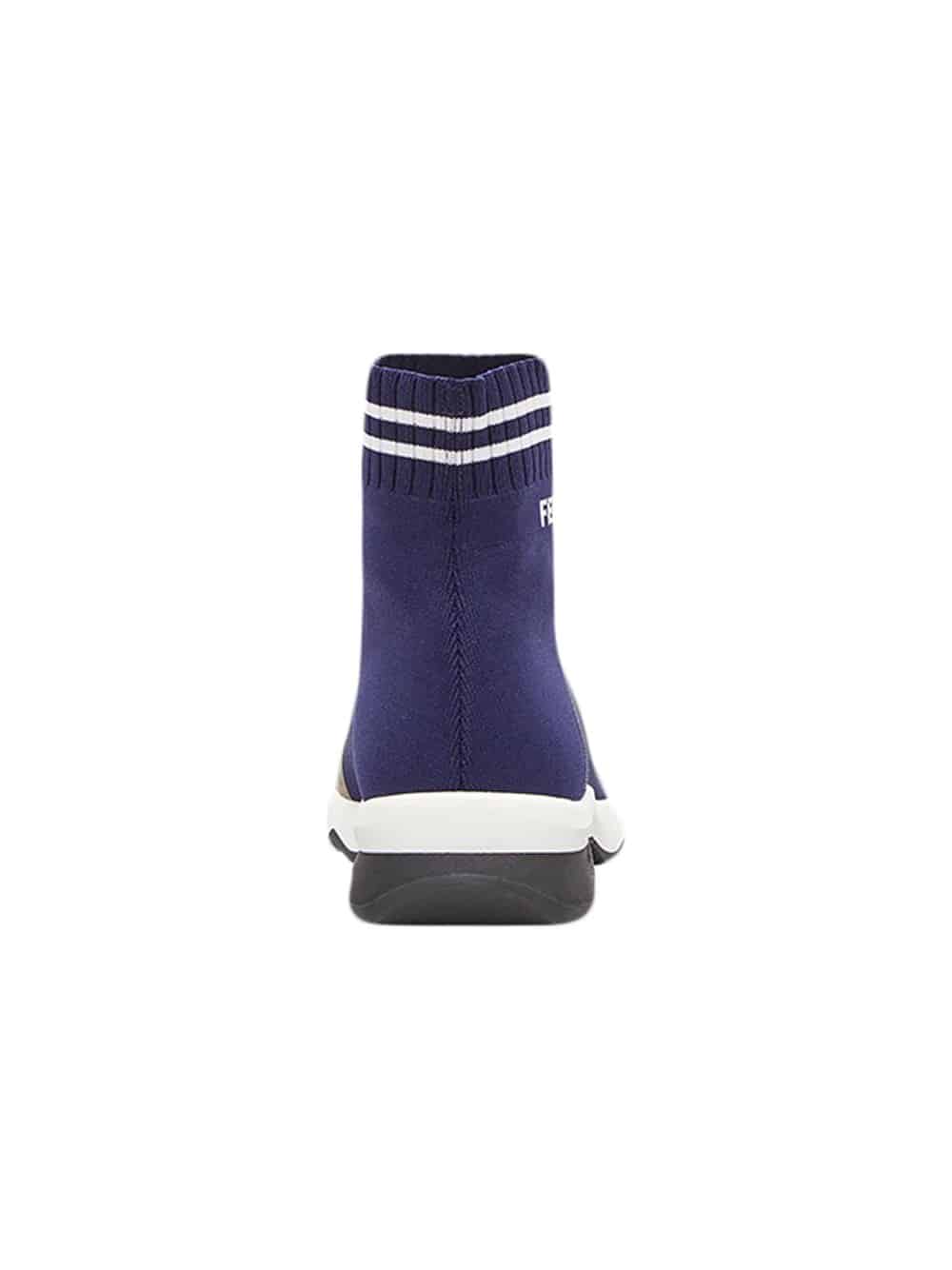 By combining comfort with fashionable elegance, Fendi has presented us with yet another amazing footwear collection. From the omnipresent double-F logo to superb colourful high-heeled sandals, Fendi has done it again. These dark blue sock style slip-on sneakers from Fendi feature an almond toe, ribbed details, a lace up detail, a ridged rubber sole, a contrasting white jacquard knit Fendi logo and a contrasting light brown panel with chocolate brown FF logos.