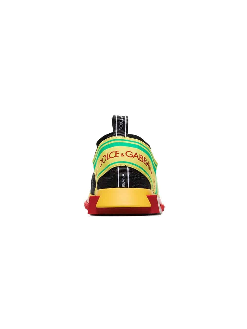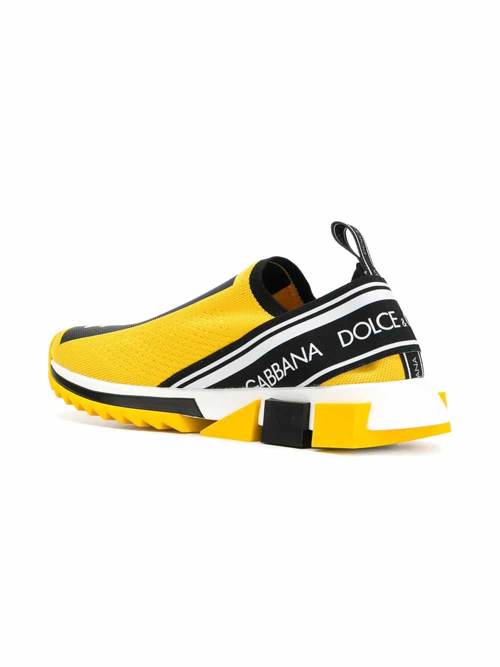Dolce & Gabbana combine logomania with the athleisure trend to present the new Sorrento sneakers for Spring Summer 2018. Presented in a bold yellow, these Sorrento sneakers feature a round toe, a slip-on style, a branded insole, a pull tab at the rear, ridged rubber sole and is decorated with a contrasting black and white logo print to the upper and a logo band heel counter.