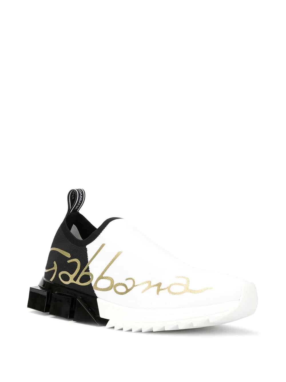 Embrace a leisurely take on luxury dressing with Dolce & Gabbana’s latest collection. These black and white stretch mesh Sorrento sneakers are crafted from leather and feature a round toe, a slip-on style, a pull tab at the rear, a two tone design and a contrasting heel and italic logo on the side.