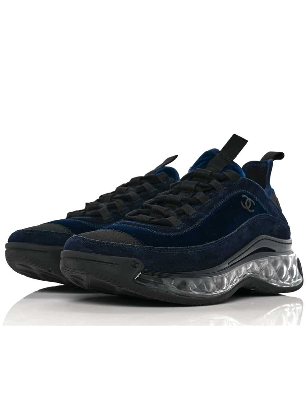 Suede Calfskin Velvet Grosgrain CC Sneakers 39.5 Navy Blue Black