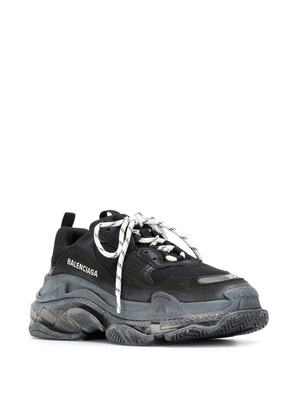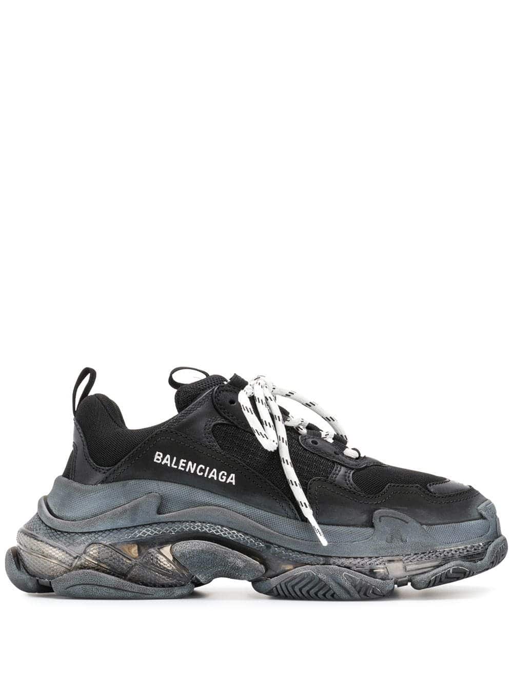 It is no surprise that anything Balenciaga conjures up rises to cult status. This season, expect more iconic handbags, contemporary footwear with a retro feel and logo-sprawled surfaces. The Triple S sneakers from Balenciaga have become a signature for the House and feature a round toe, a lace-up front fastening, a logo patch at the tongue, mesh panels, a distressed finish, a ridged platform sole and printed logo to the side.