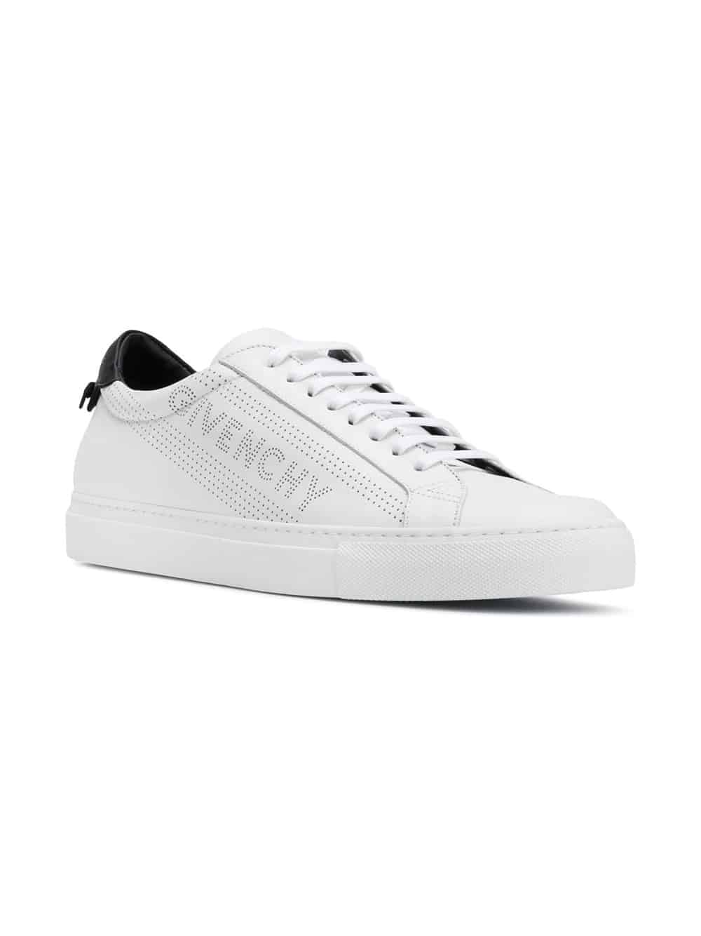 WGivenchy possesses a redefined, bold aesthetic with streetwear-inspired designs and stand-out graphics. Crafted from calf leather, these white Urban Street sneakers from Givenchy feature a lace-up front fastening, a round toe, a perforated logo to the side, a contrasting black heel counter with logo and a flat rubber sole.