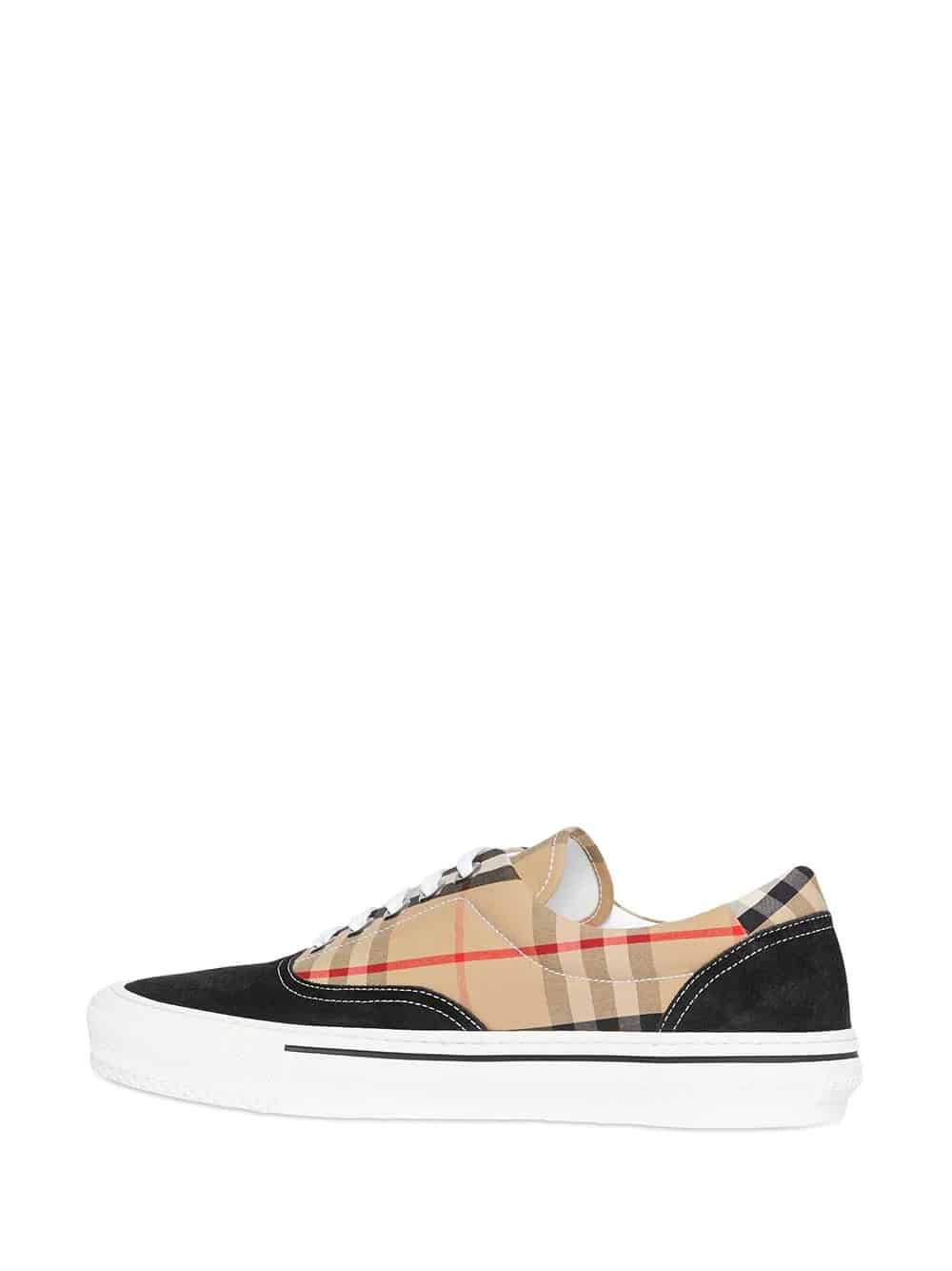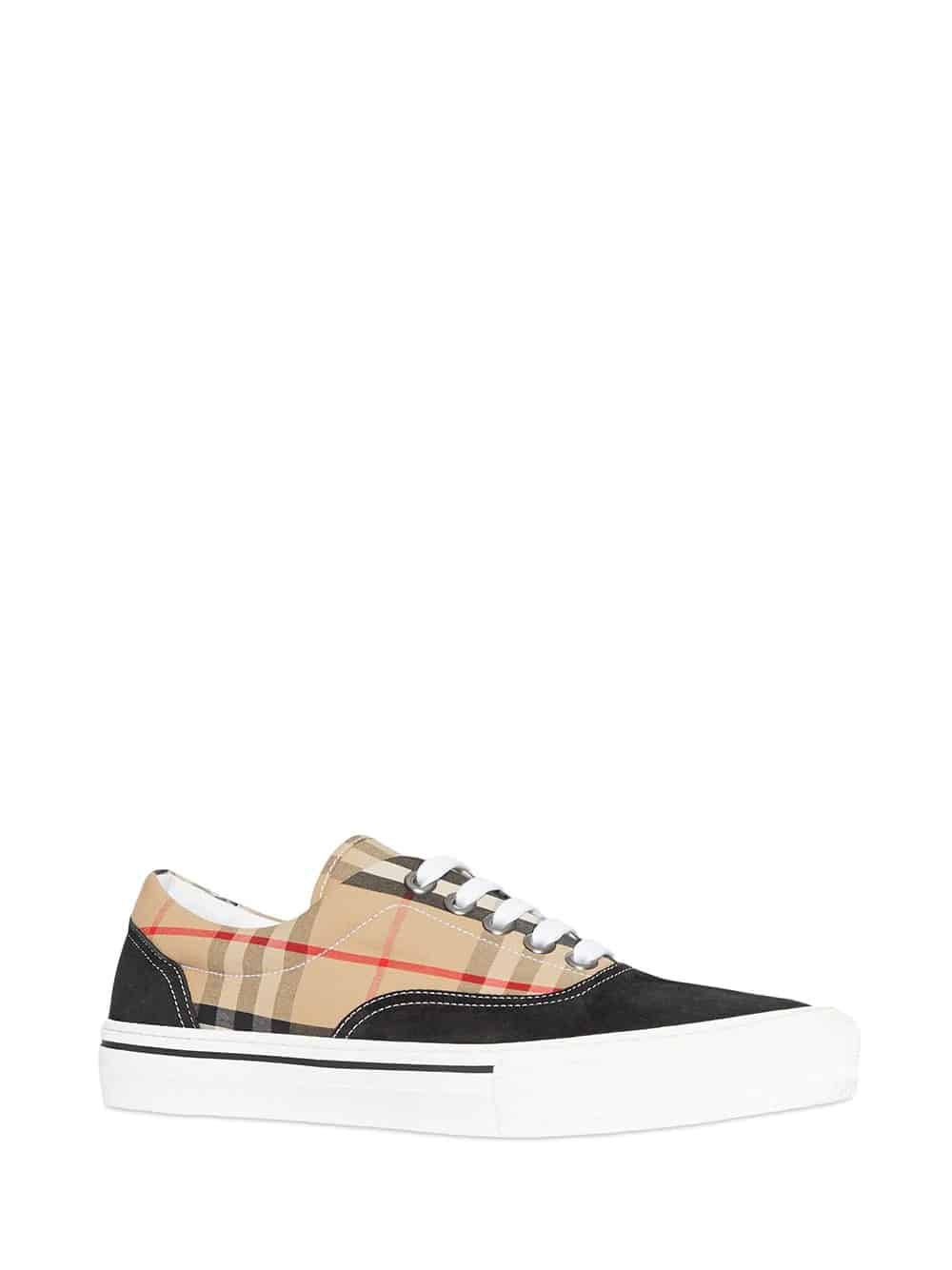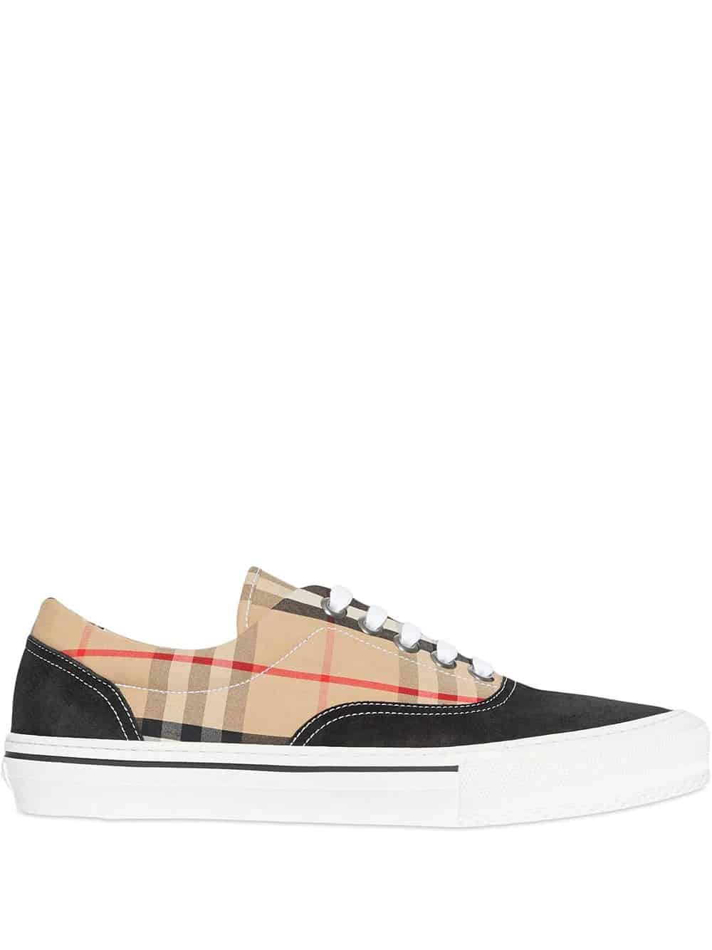 Classic low-top sneakers reimagined in Vintage check cotton and suede, finished with our refreshed logo.